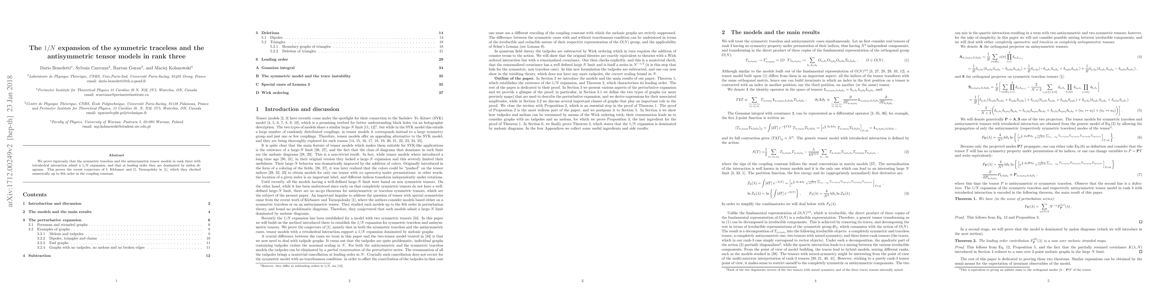 This paper rigorously confirms the $1/N$ expansion for symmetric traceless and antisymmetric tensor models in rank three with tetrahedral interaction, showing that leading-order contributions are dominated by melon diagrams, thus validating a recent conjecture by Klebanov and Tarnopolsky.