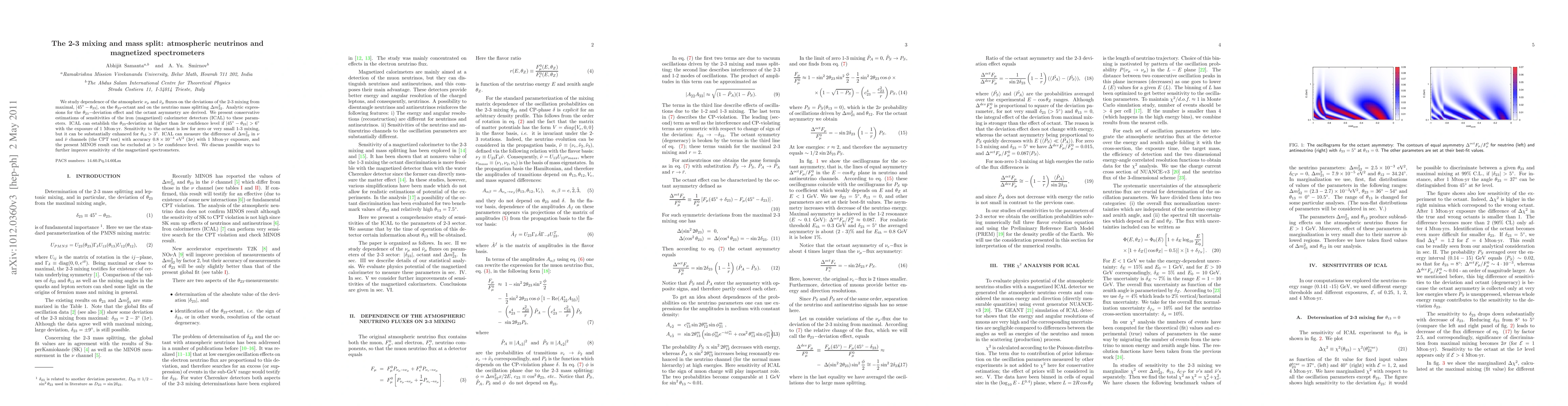We study dependence of the atmospheric $\nu_\mu$ and $\bar{\nu}_\mu$ fluxes on the deviations of the 2-3 mixing from maximal, $|45^\circ - \theta_{23}|$, on the $\theta_{23}$-octant and on the neutrino mass splitting $\Delta m_{32}^2$. Analytic expressions for the $\theta_{23}-$deviation effect and the octant asymmetry are derived. We present conservative estimations of sensitivities of the iron (magnetized) calorimeter detectors (ICAL) to these parameters. ICAL can establish the $\theta_{23}$-deviation at higher than 3$\sigma$ confidence level if $| 45^\circ - \theta_{23}| > 6^{\circ}$ with the exposure of 1 Mton$\cdot$yr. Sensitivity to the octant is low for zero or very small 1-3 mixing, but it can be substantially enhanced for $\theta_{13} > 3^\circ$. ICAL can measure the difference of $\Delta m_{32}^2$ in $\nu$ and $\bar\nu$ channels (the CPT test) with accuracy $0.8\times 10^{-4}$ eV$^2$ (3$\sigma$) with 1 Mton$\cdot$yr exposure, and the present MINOS result can be excluded at $>5\sigma$ confidence level. We discuss possible ways to further improve sensitivity of the magnetized spectrometers.