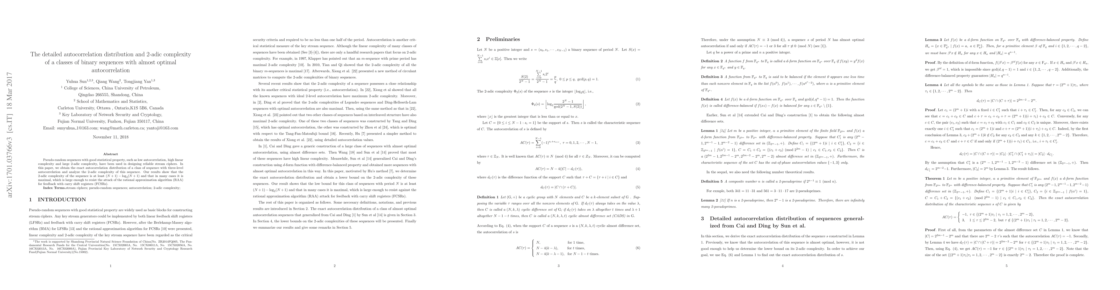 Pseudo-random sequences with good statistical property, such as low autocorrelation, high linear complexity and large 2-adic complexity, have been applied in stream cipher. In general, it is difficult to give both the linear complexity and 2-adic complexity of a periodic binary sequence. Cai and Ding \cite{Cai Ying} gave a class of sequences with almost optimal autocorrelation by constructing almost difference sets. Wang \cite{Wang Qi} proved that one type of those sequences by Cai and Ding has large linear complexity. Sun et al. \cite{Sun Yuhua} showed that another type of sequences by Cai and Ding has also large linear complexity. Additionally, Sun et al. also generalized the construction by Cai and Ding using $d$-form function with difference-balanced property. In this paper, we first give the detailed autocorrelation distribution of the sequences was generalized from Cai and Ding \cite{Cai Ying} by Sun et al. \cite{Sun Yuhua}. Then, inspired by the method of Hu \cite{Hu Honggang}, we analyse their 2-adic complexity and give a lower bound on the 2-adic complexity of these sequences. Our result show that the 2-adic complexity of these sequences is at least $N-\mathrm{log}_2\sqrt{N+1}$ and that it reach $N-1$ in many cases, which are large enough to resist the rational approximation algorithm (RAA) for feedback with carry shift registers (FCSRs).