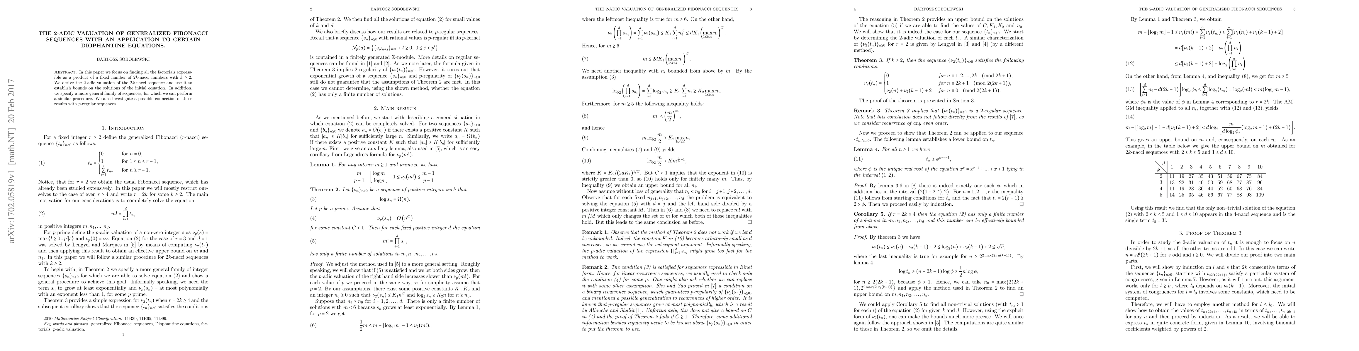 In this paper we focus on finding all the factorials expressible as a product of a fixed number of $2k$-nacci numbers with $k \geq 2$. We derive the 2-adic valuation of the $2k$-nacci sequence and use it to establish bounds on the solutions of the initial equation. In addition, we specify a more general family of sequences, for which we can perform a similar procedure. We also investigate a possible connection of these results with $p$-regular sequences.