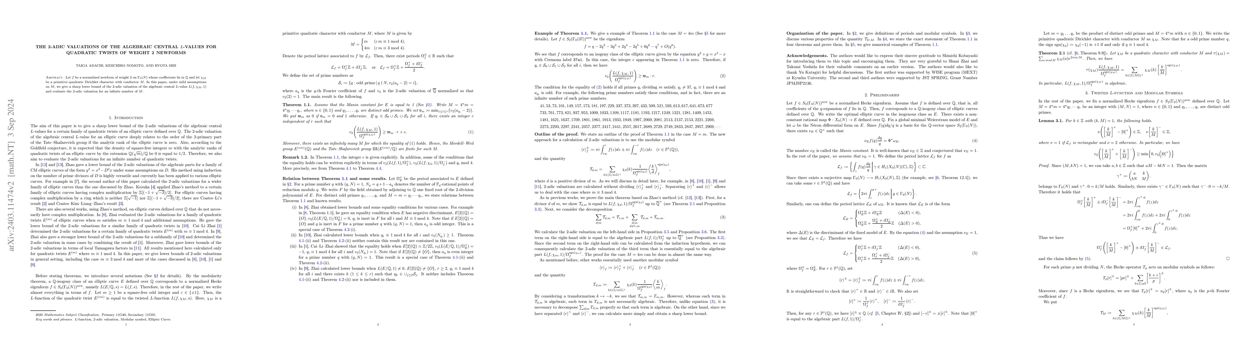 This paper provides a sharp lower bound for the 2-adic valuation of algebraic central $L$-values for quadratic twists of weight 2 newforms, evaluating the 2-adic valuation for an infinite number of cases under mild assumptions.
