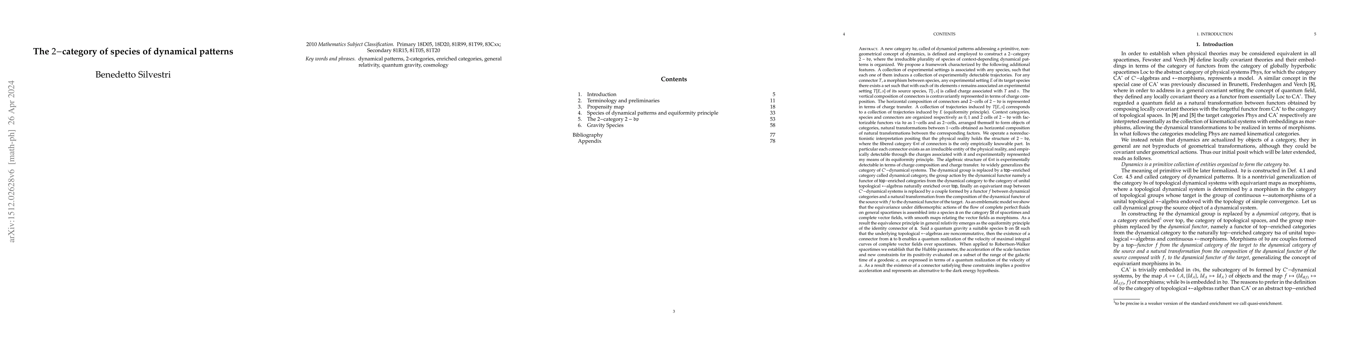The paper defines a new 2-category $\mathfrak{dp}$ of dynamical patterns to organize context-dependent dynamical systems, proposing a framework where experimental settings induce detectable trajectories. It introduces a nonreductionistic interpretation, asserting that physical reality mirrors the structure of $2-\mathfrak{dp}$, with connectors forming the empirically knowable part.