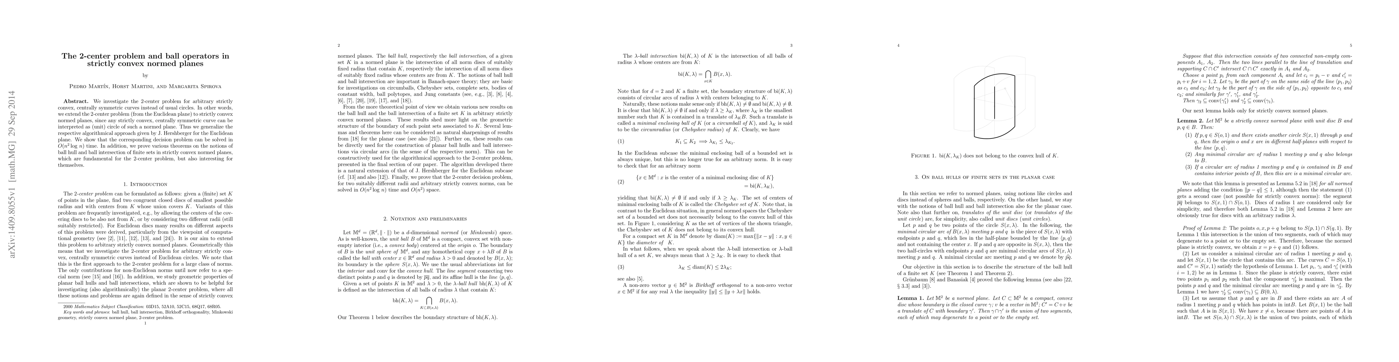 Researchers solved the 2-center problem in strictly convex normed planes, a generalization of the Euclidean plane, in O(n^2 log n) time, with implications for algorithms and fundamental concepts like ball hulls.