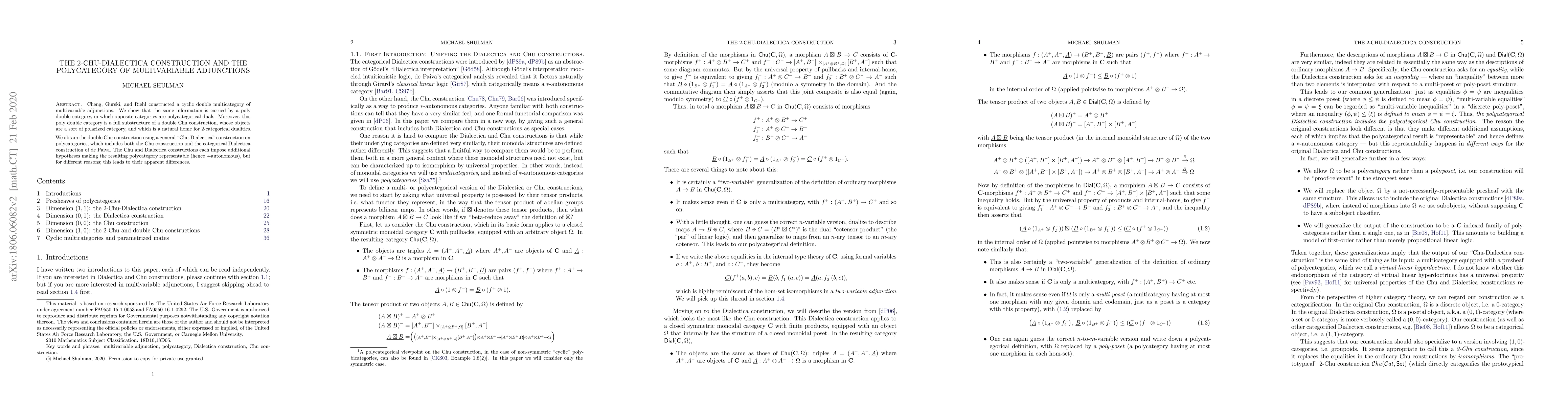 This paper introduces a double polycategory encoding multivariable adjunctions and shows it as a substructure of a double Chu construction, using a "Chu-Dialectica" framework. The Chu and Dialectica constructions, though imposing different hypotheses, both yield representable polycategories, explaining their distinct but related results.