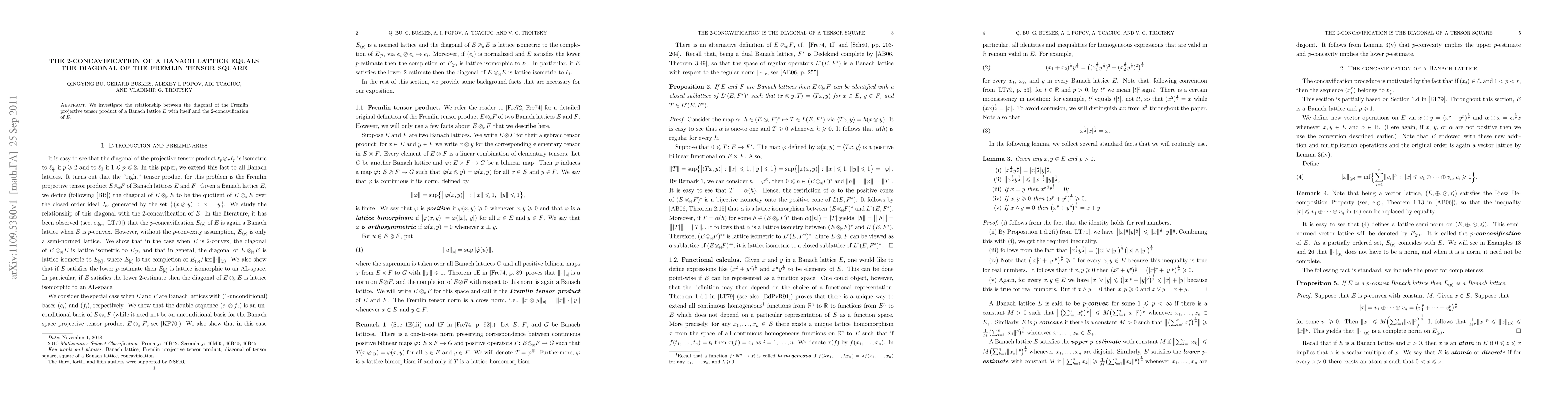Summary: This paper explores the equality between the diagonal of the Fremlin tensor square of a Banach lattice $E$ and its 2-concavification, providing insights into their structural relationship.