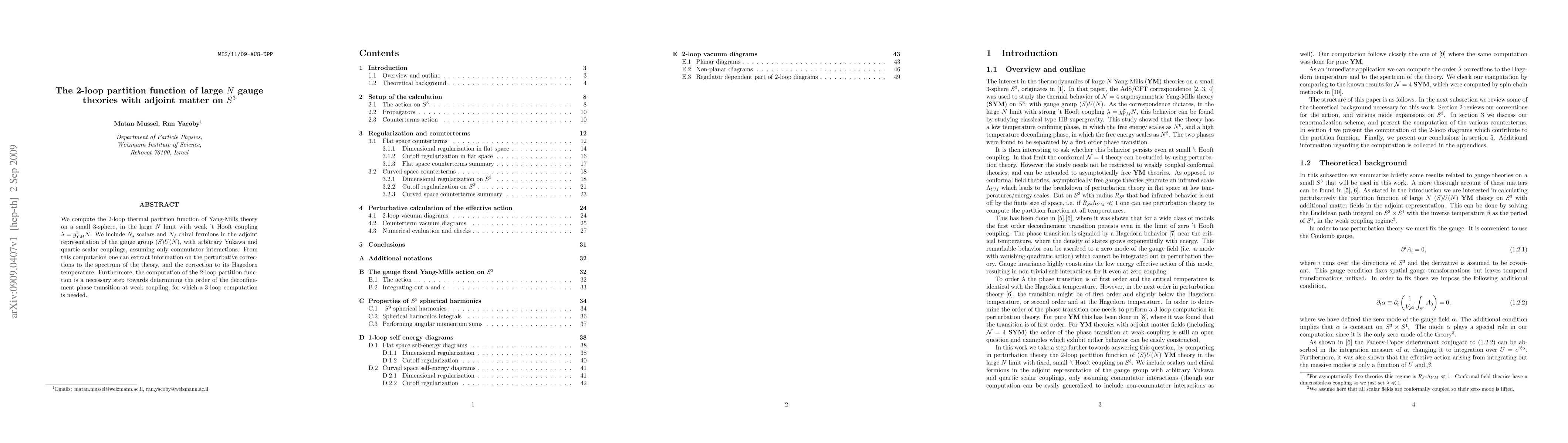 This research calculates the 2-loop thermal partition function for Yang-Mills theory on a small 3-sphere (S^3) in the large N limit with weak 't Hooft coupling, incorporating scalars and fermions in the adjoint representation of SU(N). The findings offer insights into perturbative spectrum corrections and Hagedorn temperature adjustments, paving the way for a future 3-loop study to determine the deconfinement phase transition's order at weak coupling.