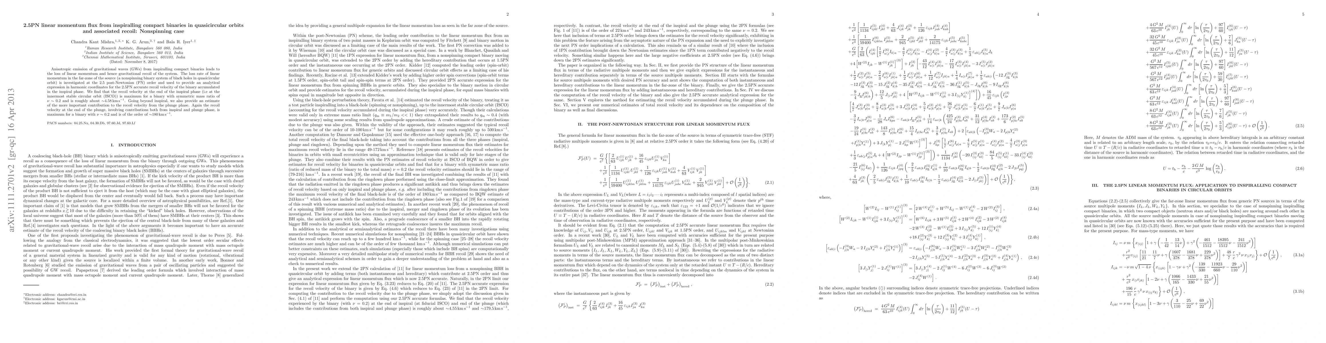 This paper investigates the 2.5 post-Newtonian order linear momentum flux from inspiralling nonspinning compact binaries, leading to gravitational recoil. It provides an analytical expression for the 2.5PN accurate recoil velocity, finding a maximum of ~4.58 km/s at the innermost stable circular orbit for binaries with symmetric mass ratio of ν~0.2, and ~180 km/s at the end of the plunge phase.