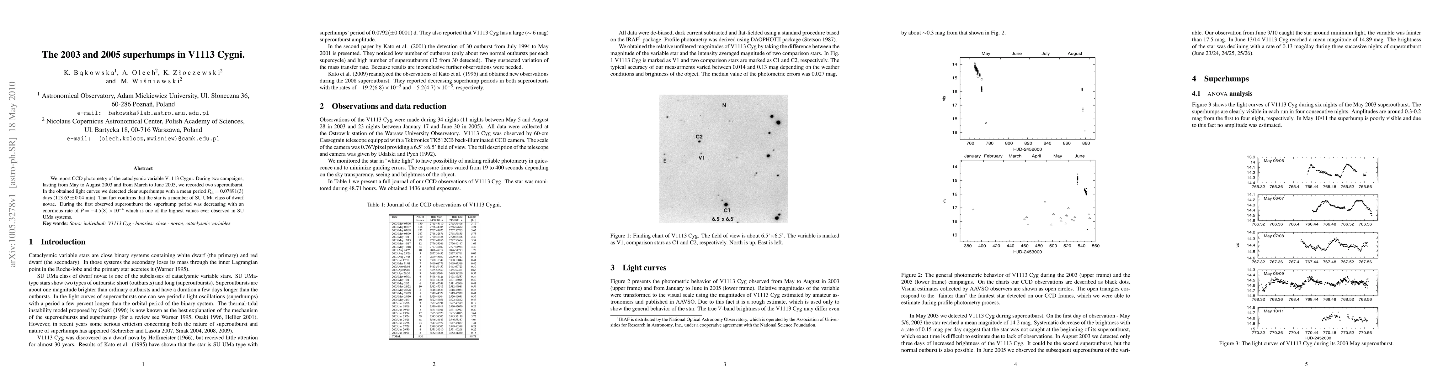 We report CCD photometry of the cataclysmic variable V1113 Cygni. During two campaigns, lasting from May to August 2003 and from March to June 2005, we recorded two superoutburst. In the obtained light curves we detected clear superhumps with a mean period 0.07891(3) days (113.63(4) min). That fact confirms that the star is a member of SU UMa class of dwarf novae. During the first observed superoutburst the superhump period was decreasing with an enormous rate of $\dot P = -4.5(8)\times 10^{-4}$ which is one of the highest values ever observed in SU UMa systems.