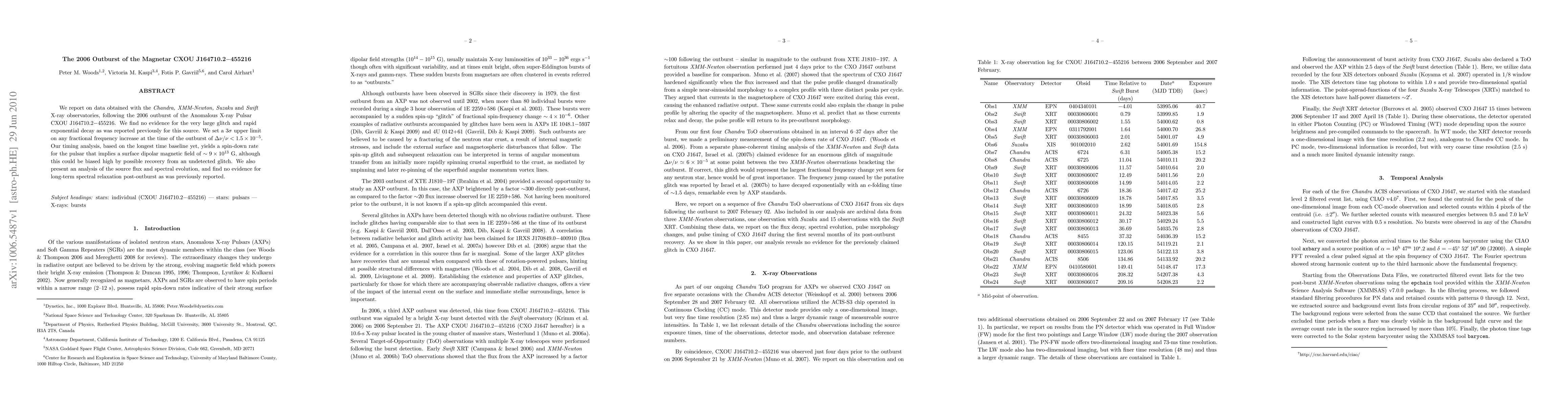 We report on data obtained with the Chandra, XMM-Newton, Suzaku and Swift X-ray observatories, following the 2006 outburst of the Anomalous X-ray Pulsar CXO J164710.2-455216. We find no evidence for the very large glitch and rapid exponential decay as was reported previously for this source. We set a 3 sigma upper limit on any fractional frequency increase at the time of the outburst of Delta nu/nu < 1.5 x 10^{-5}. Our timing analysis, based on the longest time baseline yet, yields a spin-down rate for the pulsar that implies a surface dipolar magnetic field of ~9 x 10^{13} G, although this could be biased high by possible recovery from an undetected glitch. We also present an analysis of the source flux and spectral evolution, and find no evidence for long-term spectral relaxation post-outburst as was previously reported.