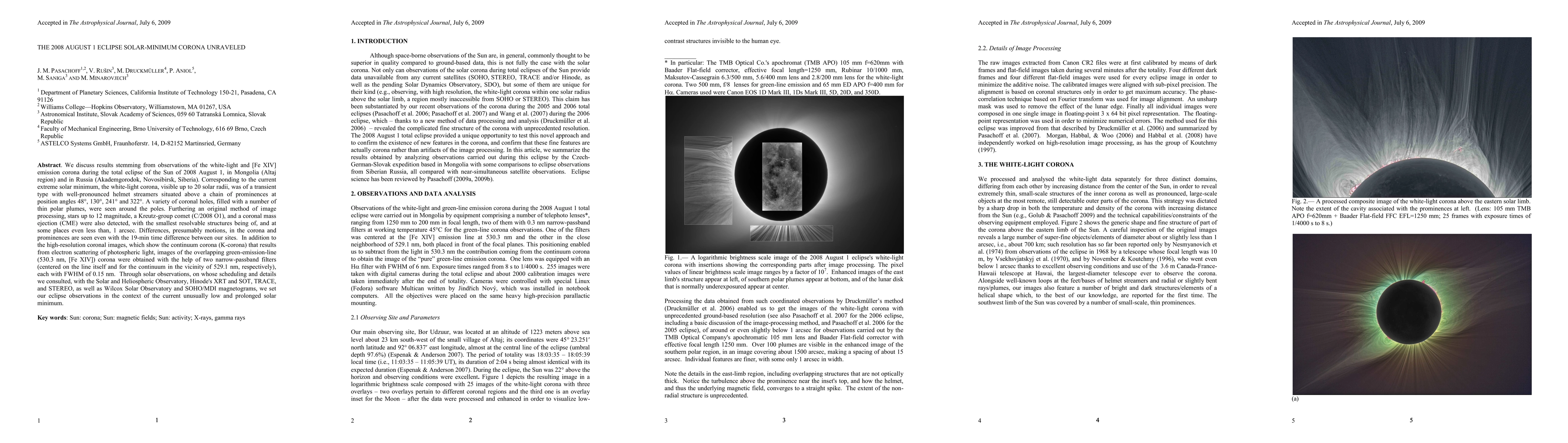 The research utilized observations of the white-light and [Fe XIV] emission corona during the total solar eclipse of 2008 August 1 in Mongolia and Russia, supplemented by data from SOHO, Hinode, TRACE, and STEREO.