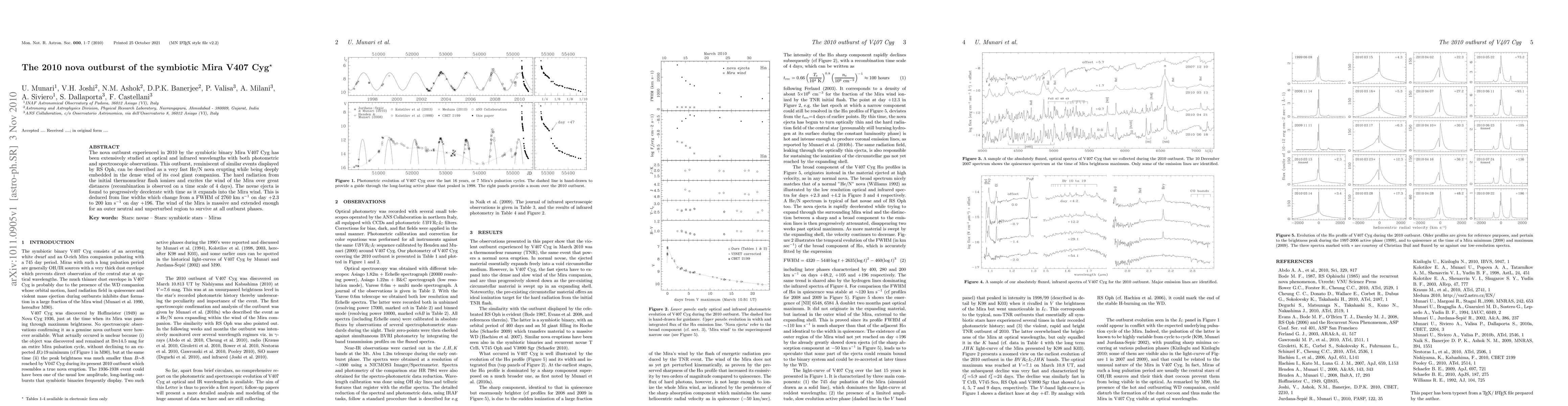 The 2010 nova outburst of symbiotic Mira V407 Cyg was a fast He/N nova deeply embedded in its giant companion's dense wind, with ejecta deceleration observed over time. The initial thermonuclear flash ionized and excited the Mira wind, with recombination occurring within four days.