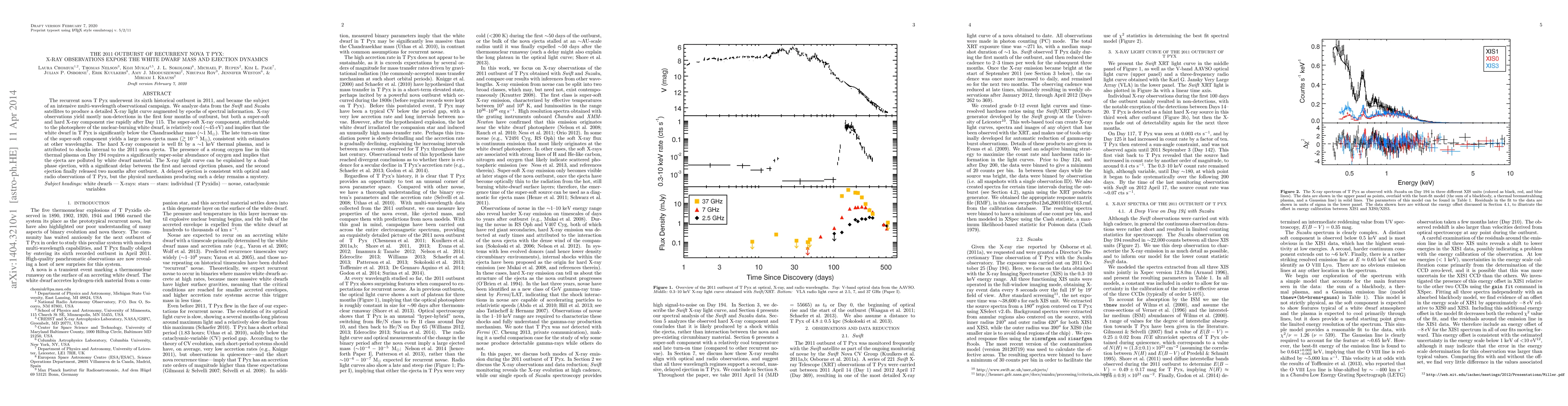 The recurrent nova T Pyx underwent its sixth historical outburst in 2011, and became the subject of an intensive multi-wavelength observational campaign. We analyze data from the Swift and Suzaku satellites to produce a detailed X-ray light curve augmented by epochs of spectral information. X-ray observations yield mostly non-detections in the first four months of outburst, but both a super-soft and hard X-ray component rise rapidly after Day 115. The super-soft X-ray component, attributable to the photosphere of the nuclear-burning white dwarf, is relatively cool (~45 eV) and implies that the white dwarf in T Pyx is significantly below the Chandrasekhar mass (~1 M_sun). The late turn-on time of the super-soft component yields a large nova ejecta mass (>~10^-5 M_sun), consistent with estimates at other wavelengths. The hard X-ray component is well fit by a ~1 keV thermal plasma, and is attributed to shocks internal to the 2011 nova ejecta. The presence of a strong oxygen line in this thermal plasma on Day 194 requires a significantly super-solar abundance of oxygen and implies that the ejecta are polluted by white dwarf material. The X-ray light curve can be explained by a dual-phase ejection, with a significant delay between the first and second ejection phases, and the second ejection finally released two months after outburst. A delayed ejection is consistent with optical and radio observations of T Pyx, but the physical mechanism producing such a delay remains a mystery.