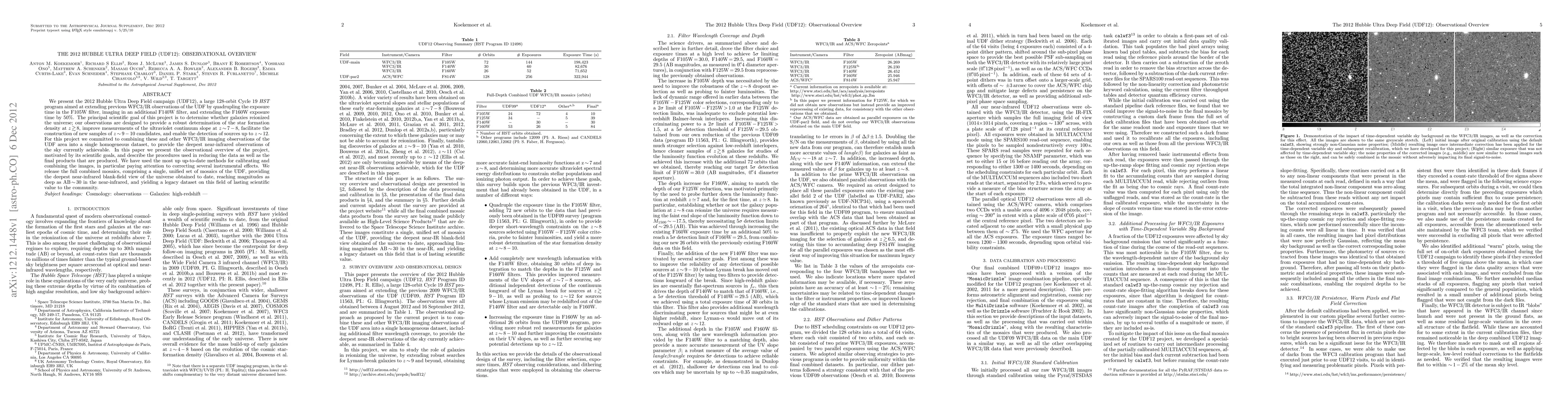 We present the 2012 Hubble Ultra Deep Field campaign (UDF12), a large 128-orbit Cycle 19 \HST\ program aimed at extending previous WFC3/IR observations of the UDF by quadrupling the exposure time in the F105W filter, imaging in an additional F140W filter, and extending the F160W exposure time by 50%. The principal scientific goal of this project is to determine whether galaxies reionized the universe; our observations are designed to provide a robust determination of the star formation density at $z$$\,\gtrsim\,$8, improve measurements of the ultraviolet continuum slope at $z$$\,\sim\,7\,-\,$8, facilitate the construction of new samples of $z$$\,\sim\,9\,-\,$10 candidates, and enable the detection of sources up to $z$$\,\sim\,$12. For this project we committed to combining these and other WFC3/IR imaging observations of the UDF area into a single homogeneous dataset, to provide the deepest near-infrared observations of the sky currently achievable. In this paper we present the observational overview of the project, motivated by its scientific goals, and describe the procedures used in reducing the data as well as the final products that are produced. We have used the most up up-to-date methods for calibrating and combining the images, in particular paying attention to correcting several instrumental effects. We release the full combined mosaics, comprising a single, unified set of mosaics of the UDF, providing the deepest near-infrared blank-field view of the universe obtained to date, reaching magnitudes as deep as AB$\,\sim\,$30 in the near-infrared, and yielding a legacy dataset on this field of lasting scientific value to the community.