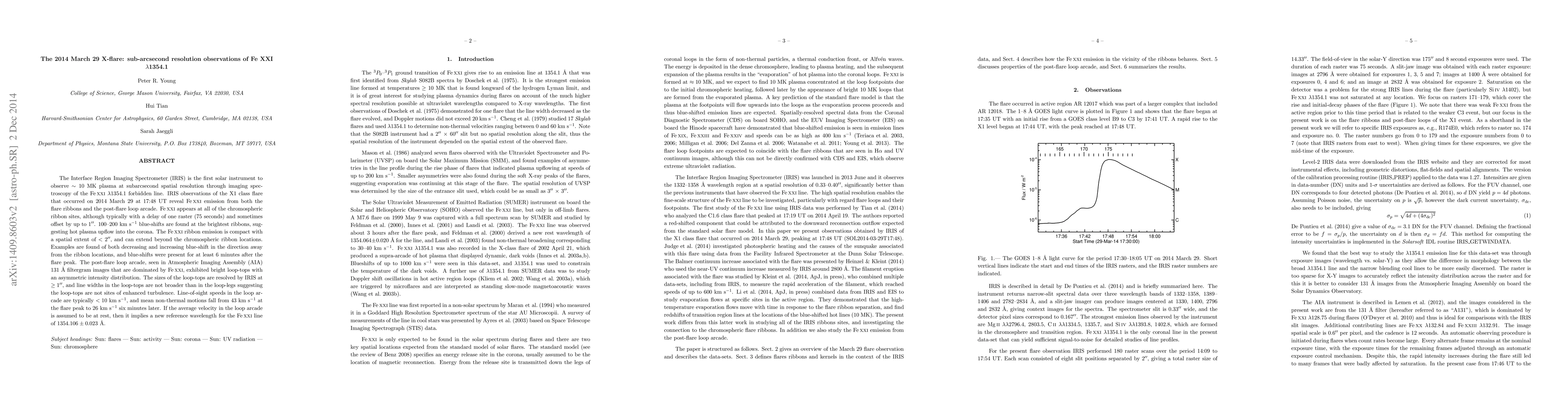 Scientists used the Interface Region Imaging Spectrometer to observe an X-flare on March 29, 2014, revealing Fe XXI emission from both flare ribbons and post-flare loop arcade, indicating hot plasma upflow into the corona.