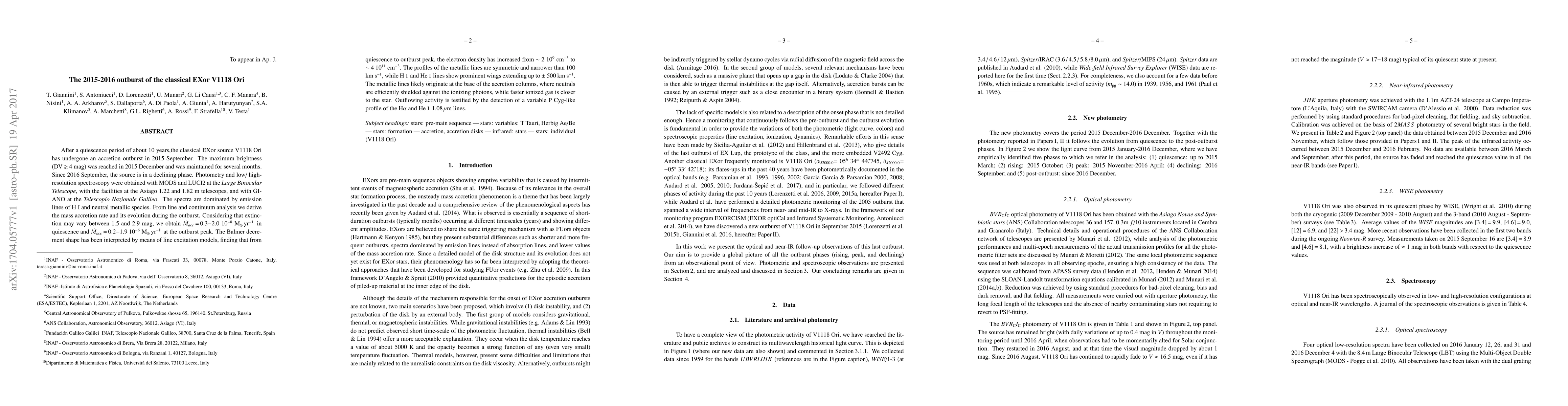 The 2015-2016 outburst of classical EXor V1118 Ori was characterized by a sudden increase in brightness and emission lines indicating accretion activity. The study derived the mass accretion rate during the outburst, finding it to be significantly higher than during quiescence.