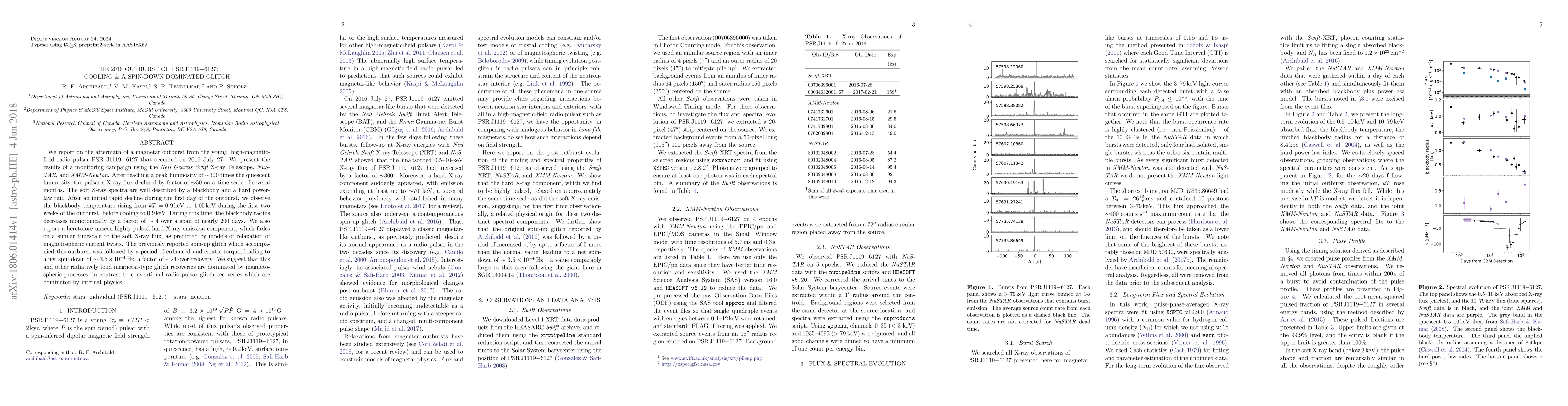 The 2016 outburst of PSR J1119-6127 involved a peak X-ray luminosity increase followed by a rapid decline, with a rise in blackbody temperature and a decrease in radius, alongside a previously unseen pulsed hard X-ray emission. The associated spin-up glitch was followed by significant spin-down, suggesting magnetospheric processes dominate this type of recovery.