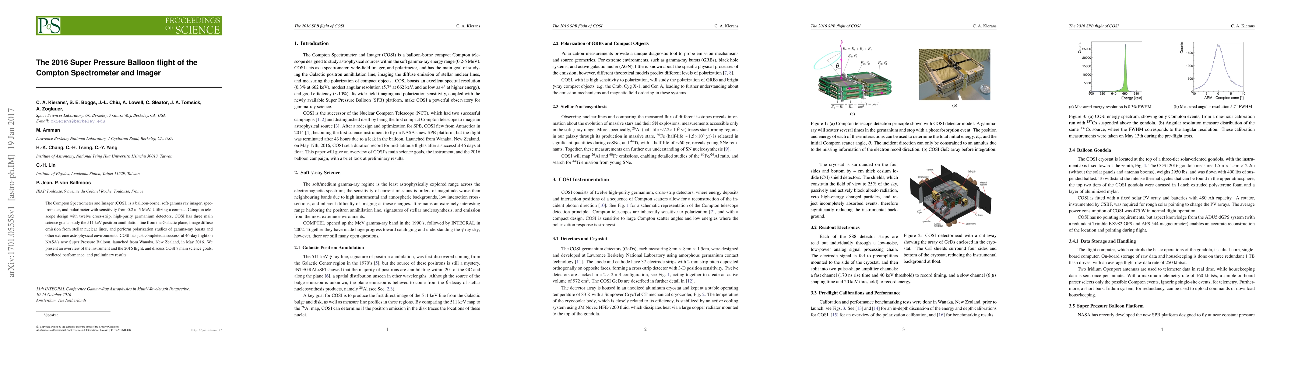 The Compton Spectrometer and Imager (COSI) completed a 46-day flight on NASA's Super Pressure Balloon in 2016, achieving soft-gamma ray imaging and spectroscopy. The mission aims to study positron annihilation, stellar nuclear lines, and gamma-ray burst polarizations.