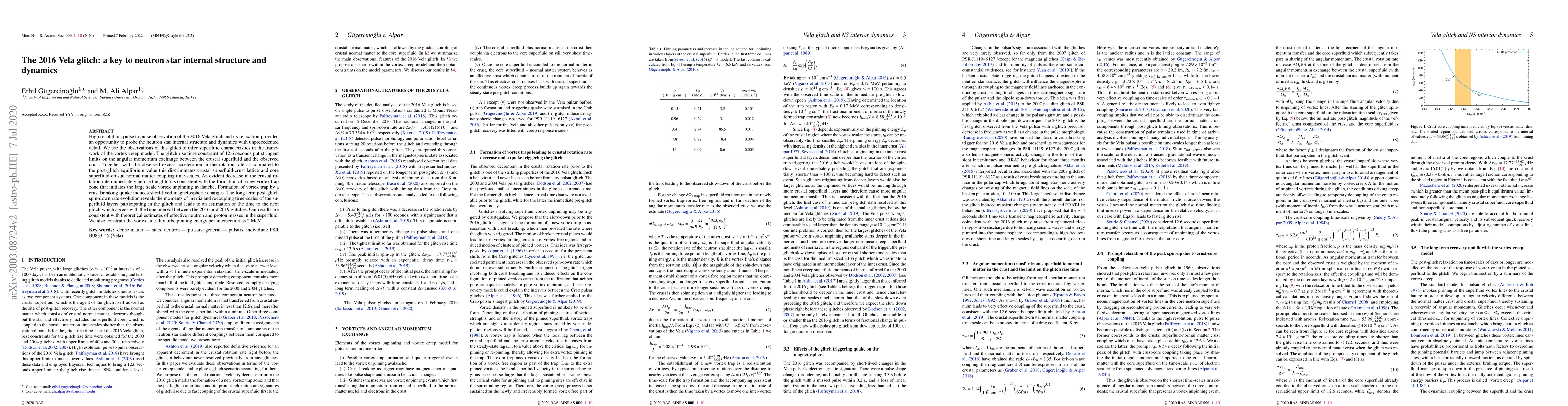Researchers studied the 2016 Vela glitch to understand neutron star internal structure and dynamics, finding evidence of superfluidity and constraints on neutron star mass estimates.