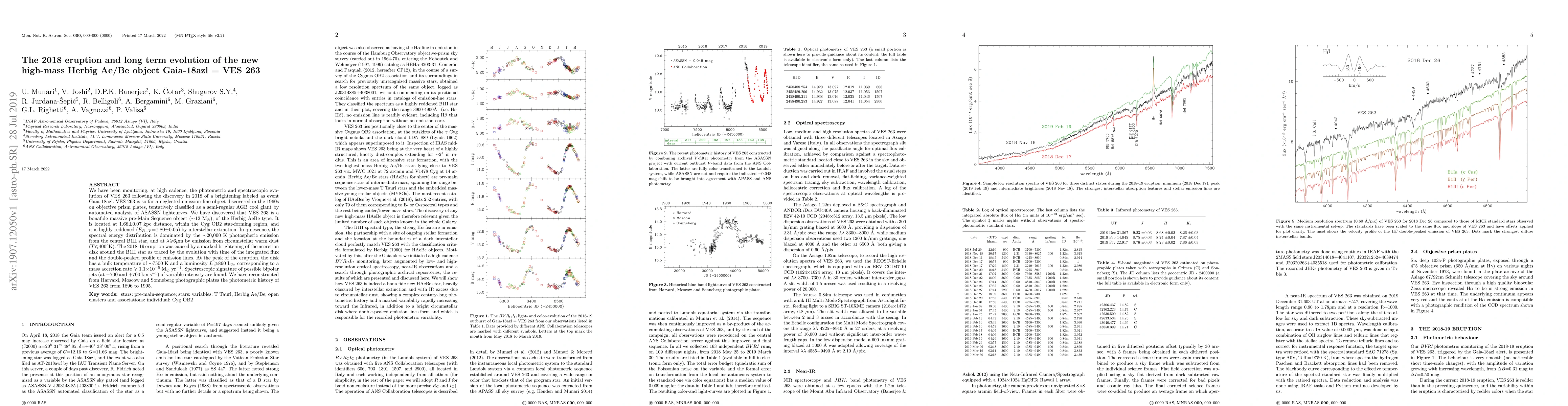 We have been monitoring, at high cadence, the photometric and spectroscopic evolution of VES 263 following the discovery in 2018 of a brightening labeled as event Gaia-18azl. VES 263 is so far a neglected emission-line object discovered in the 1960s on objective prism plates, tentatively classified as a semi-regular AGB cool giant by automated analysis of ASASSN lightcurves. We have discovered that VES 263 is a bonafide massive pre-Main Sequence object (~12 Msun), of the Herbig AeBe type. It is located at 1.68+/-0.07 kpc distance, within the Cyg OB2 star-forming region, and it is highly reddened (E(B-V)=1.80+/-0.05) by interstellar extinction. In quiescence, the spectral energy distribution is dominated by the 20,000 K photospheric emission from the central B1II star, and at wavelenghts >=6 micron by emission from circumstellar warm dust (Tdust up to 400 K). The 2018-19 eruption was caused by a marked brightening of the accretion disk around the B1II star as traced by the evolution with time of the integrated flux and the double-peaked profile of emission lines. At the peak of the eruption, the disk has a bulk temperature of ~7500 K and a luminosity L>=860 Lsun, corresponding to a mass accretion rate >=1.1x10(-5) Msun/yr. Spectroscopic signature of possible bipolar jets (at -700 and +700 km/s) of variable intensity are found. We have reconstructed from Harvard, Moscow and Sonneberg photographic plates the photometric history of VES 263 from 1896 to 1995, showing through 1953-1969 a state much brighter than current eruption.