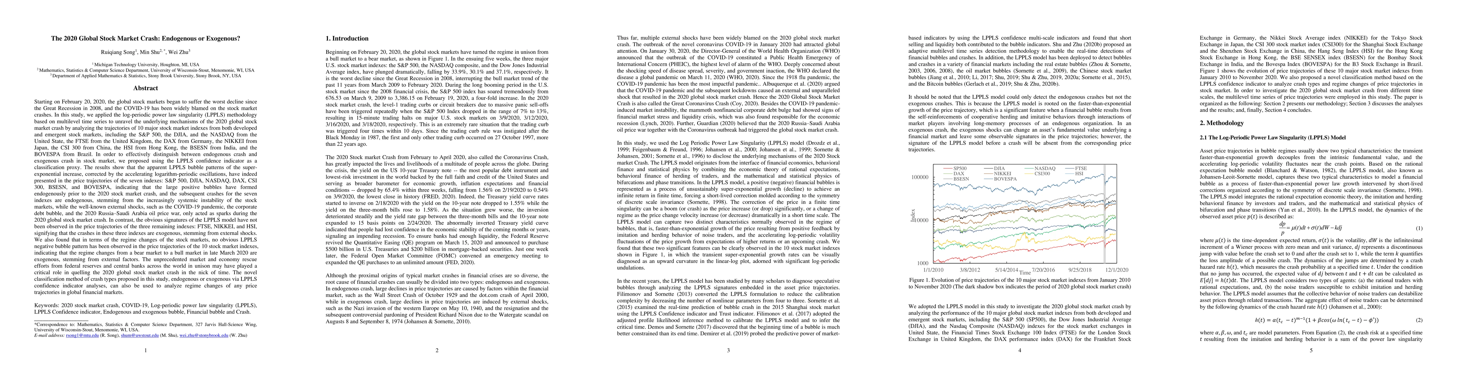 This paper investigates the 2020 global stock market crash using the log-periodic power law singularity methodology, finding that seven major indexes experienced endogenous crashes driven by systemic instability, while three others crashed exogenously due to external shocks like the COVID-19 pandemic.