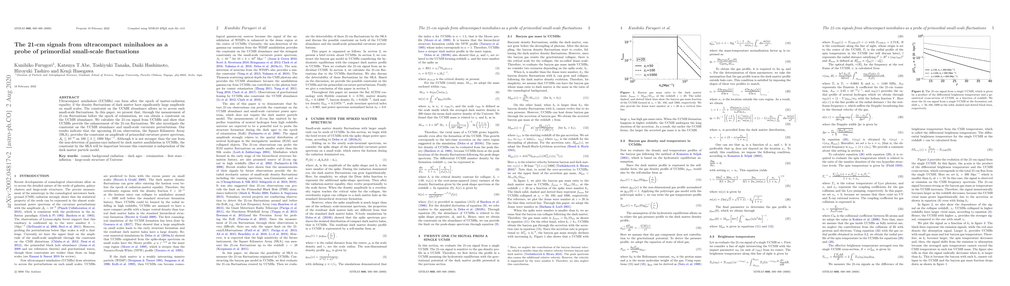 This paper investigates how 21-cm signals from ultracompact minihalos (UCMHs) can probe primordial small-scale fluctuations. The study suggests that upcoming SKA observations will constrain the UCMH abundance and provide an independent limit on the amplitude of the primordial curvature power spectrum, ${\cal A}_{\zeta} \lesssim 10^{-6}$ on $100~{\rm Mpc}^{-1} \lesssim k \lesssim 1000~{\rm Mpc}^{-1}$.