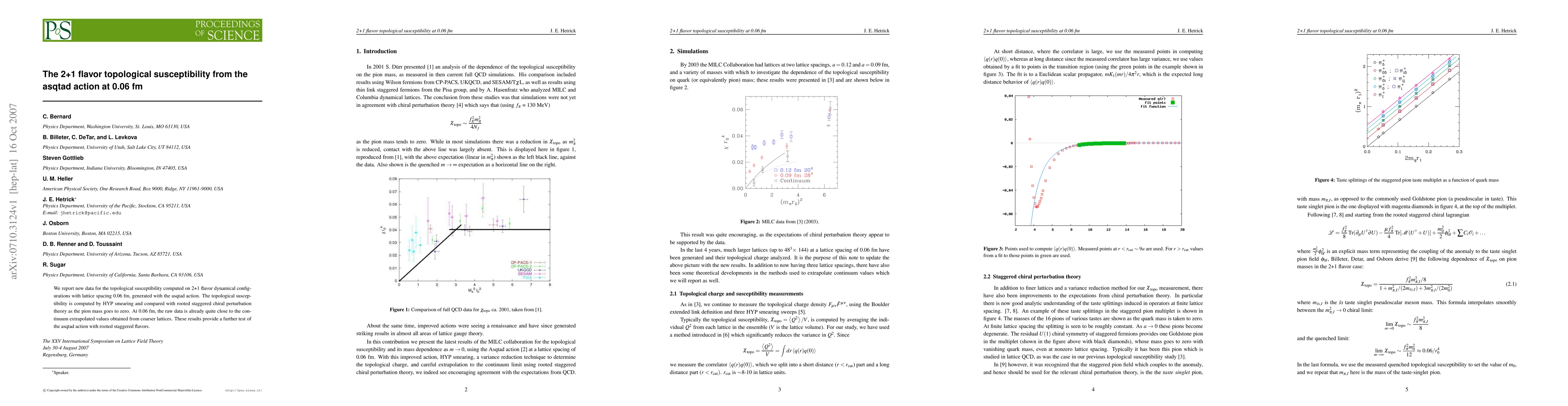 Researchers compute topological susceptibility on 2+1 flavor configurations with a lattice spacing of 0.06 fm using the asqtad action, finding results that are already close to continuum values obtained from coarser lattices.