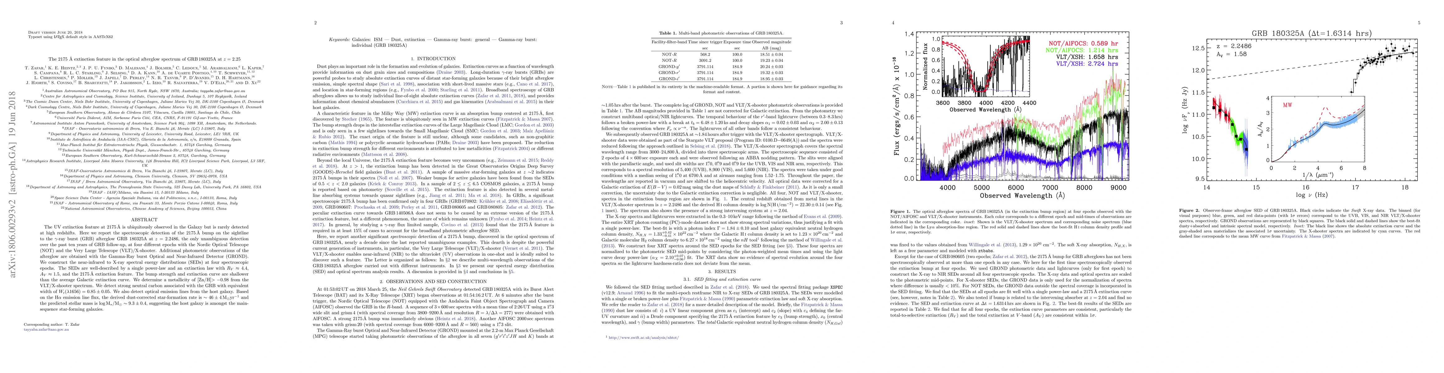 The UV extinction feature at 2175 \AA\ is ubiquitously observed in the Galaxy but is rarely detected at high redshifts. Here we report the spectroscopic detection of the 2175 \AA\ bump on the sightline to the \gamma-ray burst (GRB) afterglow GRB 180325A at z=2.2486, the only unambiguous detection over the past ten years of GRB follow-up, at four different epochs with the Nordic Optical Telescope (NOT) and the Very Large Telescope (VLT)/X-shooter. Additional photometric observations of the afterglow are obtained with the Gamma-Ray burst Optical and Near-Infrared Detector (GROND). We construct the near-infrared to X-ray spectral energy distributions (SEDs) at four spectroscopic epochs. The SEDs are well-described by a single power-law and an extinction law with R_V~4.4, A_V~1.5, and the 2175 \AA\ extinction feature. The bump strength and extinction curve are shallower than the average Galactic extinction curve. We determine a metallicity of [Zn/H]>-0.98 from the VLT/X-shooter spectrum. We detect strong neutral carbon associated with the GRB with an equivalent width of Wr(\lambda 1656) = 0.85+/-0.05. We also detect optical emission lines from the host galaxy. Based on the H\alpha emission line flux, the derived dust-corrected star-formation rate is ~46+/-4 M_sun/yr and the predicted stellar mass is log M*/M_sun~9.3+/-0.4, suggesting the host galaxy is amongst the main-sequence star-forming galaxies.