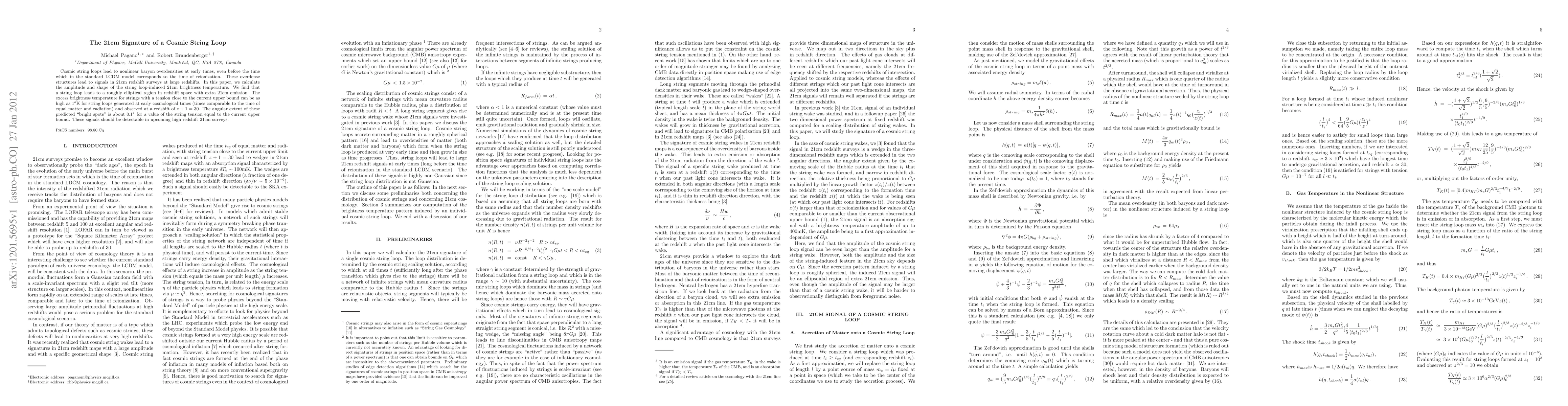 Cosmic string loops produce unique 21cm signals that can be detected in high-redshift surveys, potentially offering insights into early cosmological times.