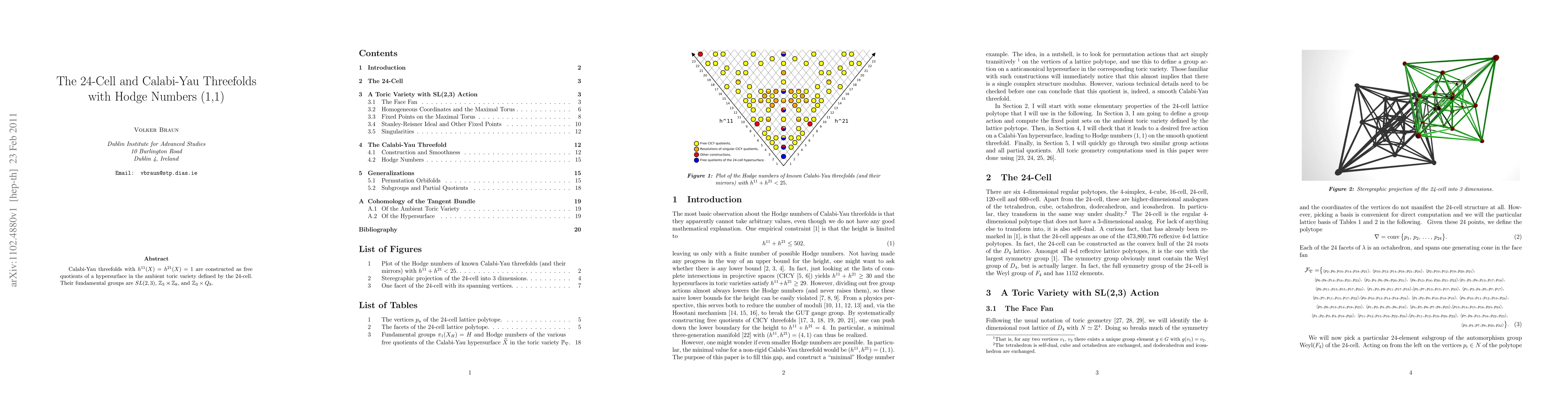 Summary: This paper constructs Calabi-Yau threefolds with specific Hodge numbers as free quotients of a hypersurface in a toric variety defined by the 24-cell, revealing fundamental groups including SL(2,3), Z_3 x Z_8, and Z_3 x Q_8.