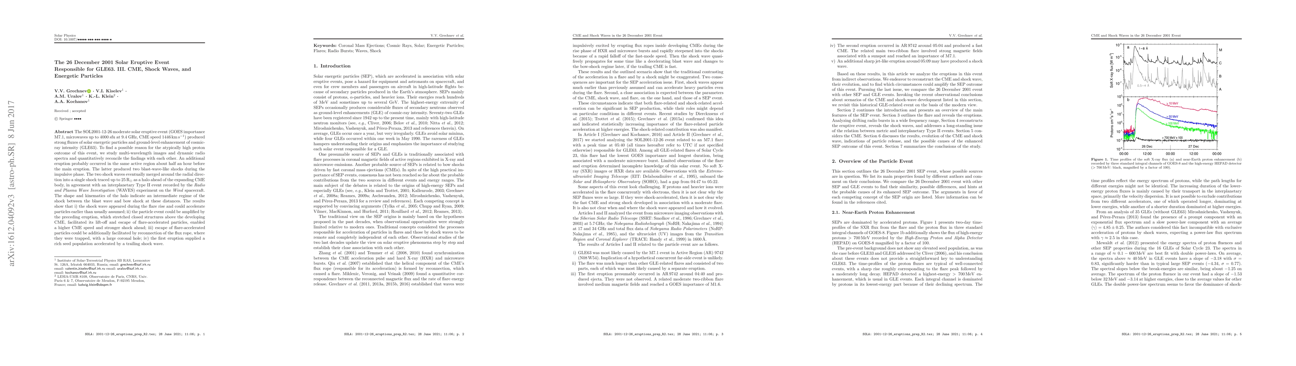 A 2001 solar eruptive event caused a significant increase in cosmic-ray intensity, with two additional eruptions contributing to the phenomenon. The study analyzed multi-wavelength images and radio spectra to understand the complex interactions between solar energetic particles and interplanetary shocks.