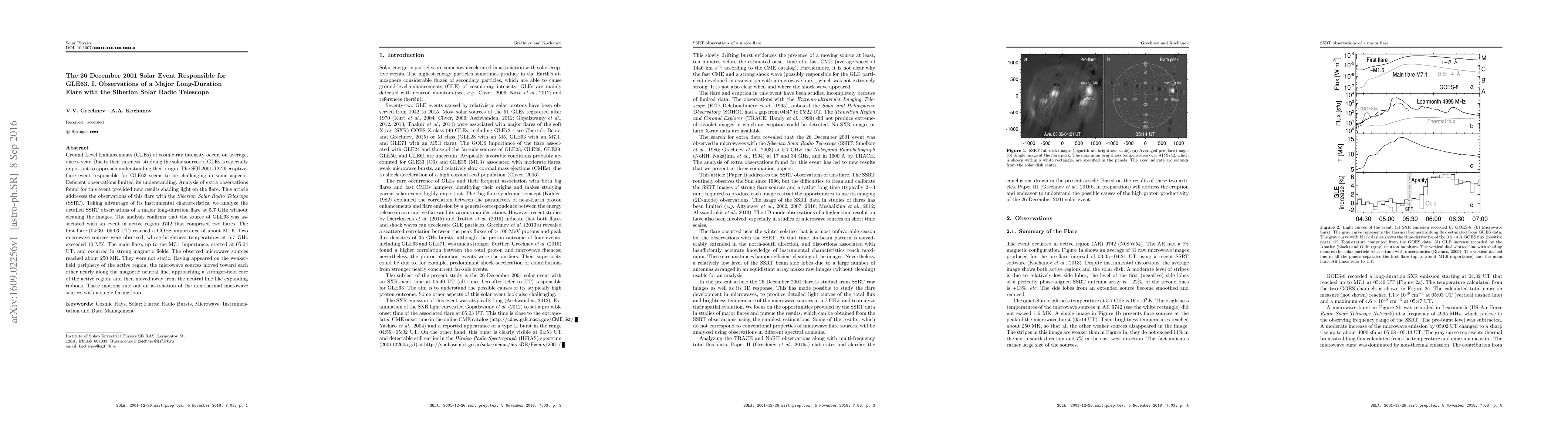 The 26 December 2001 solar event triggered a major long-duration flare that caused a Ground Level Enhancement, studied using the Siberian Solar Radio Telescope. The analysis revealed two flares in active region 9742, with microwave sources moving towards each other along magnetic neutral lines.