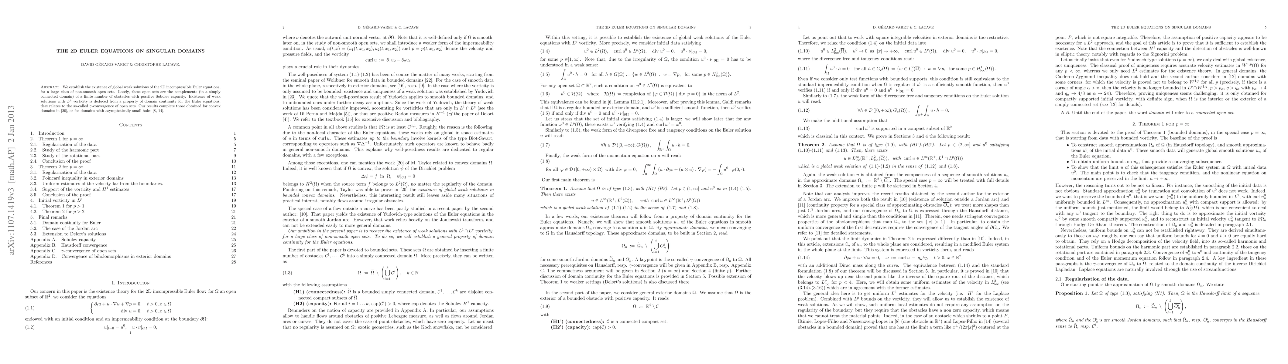 We establish the existence of global weak solutions of the 2D incompressible Euler equation, for a large class of non-smooth open sets. These open sets are the complements (in a simply connected domain) of a finite number of connected compact sets with positive capacity. Existence of weak solutions with $L^p$ vorticity is deduced from an approximation argument, that relates to the so-called $\Gamma$-convergence of domains. Our results complete those obtained for convex domains, or for domains with asymptotically small holes. Connection is made to the recent papers of the second author on the Euler equation in the exterior of a Jordan arc.