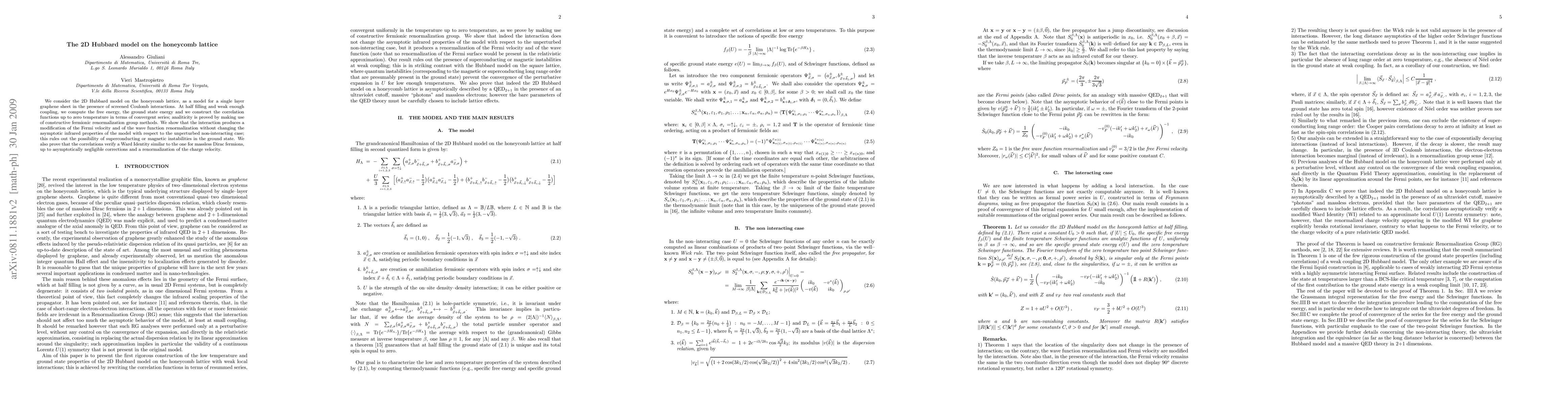 Researchers studied the 2D Hubbard model on a honeycomb lattice, finding that weak interactions modify Fermi velocity but not asymptotic infrared properties, ruling out superconducting or magnetic instabilities.