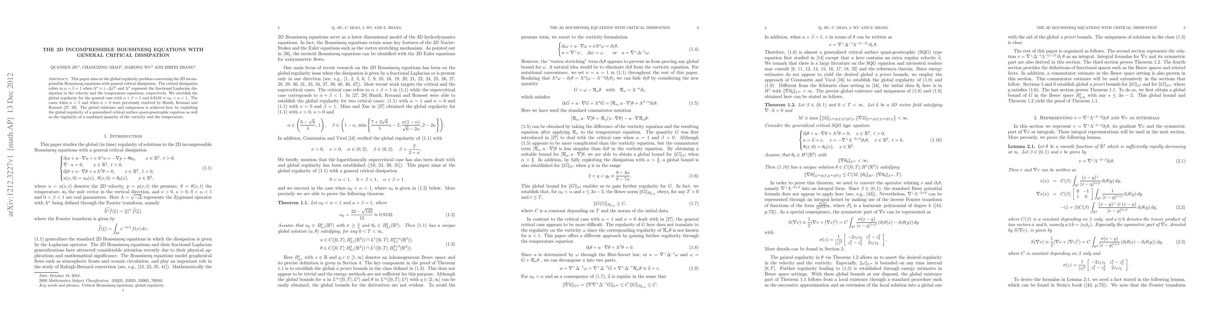 This paper aims at the global regularity problem concerning the 2D incompressible Boussinesq equations with general critical dissipation. The critical dissipation refers to $\alpha +\beta=1$ when $\Lambda^\alpha \equiv (-\Delta)^{\frac{\alpha}{2}}$ and $\Lambda^\beta$ represent the fractional Laplacian dissipation in the velocity and the temperature equations, respectively. We establish the global regularity for the general case with $\alpha+\beta=1$ and $0.9132\approx \alpha_0<\alpha<1$. The cases when $\alpha=1$ and when $\alpha=0$ were previously resolved by Hmidi, Keraani and Rousset \cite{HKR1,HKR2}. The global existence and uniqueness is achieved here by exploiting the global regularity of a generalized critical surface quasi-gesotrophic equation as well as the regularity of a combined quantity of the vorticity and the temperature.
