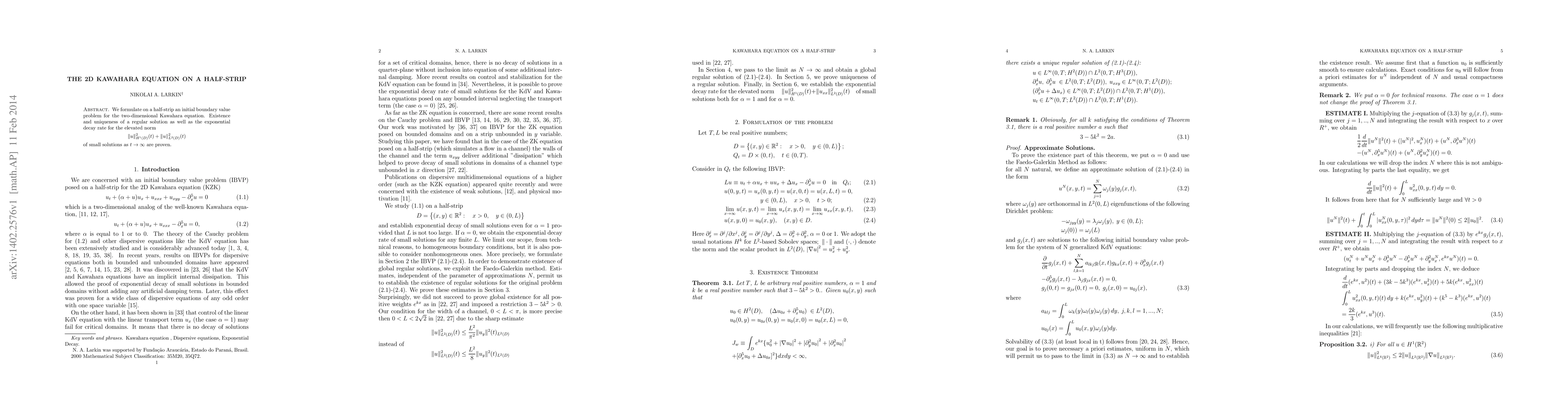 This research establishes an initial boundary value problem for the 2D Kawahara equation on a half-strip, proving the existence, uniqueness, and exponential decay rate for small solutions.