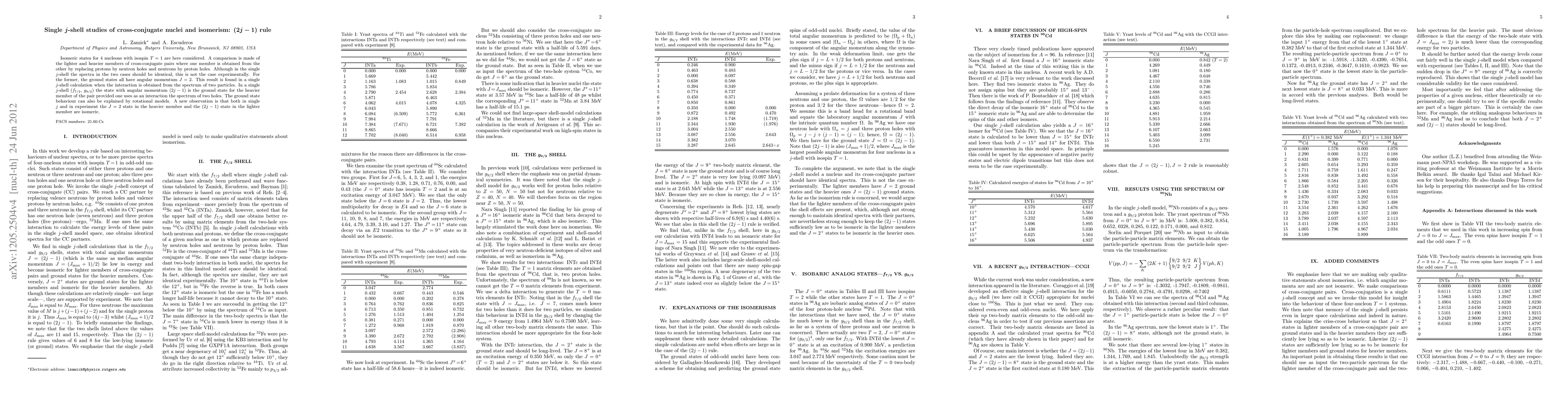 We recently formulated a rule for isomeric states for a system of 4 nucleons with isospin T=1, namely that if the nucleons are in a single j shell then states with angular momenta J=2 and J=(2j-1) are either isomeric or ground states [ze12]. To show that this is a robust result, we here consider a new interaction from the literature that was used to discuss even-even and odd-even nuclei. We here apply it to an odd-odd nucleus.