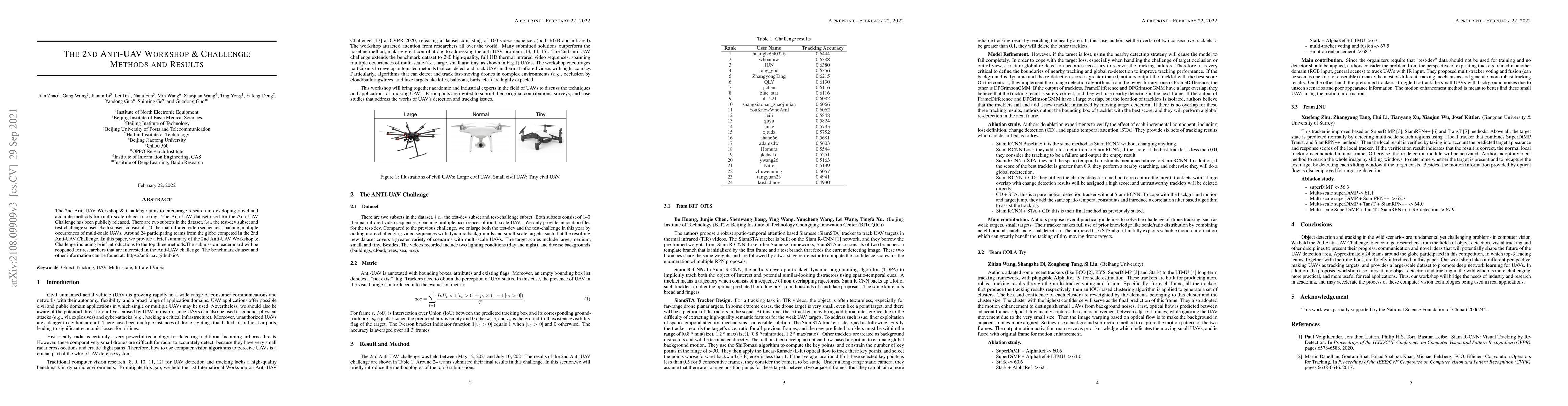 The 2nd Anti-UAV Workshop & Challenge focused on advancing multi-scale object tracking methods for UAVs, releasing a benchmark dataset with thermal infrared videos. The top three methods from around 24 competing teams were briefly introduced, and the dataset is publicly available for further research.