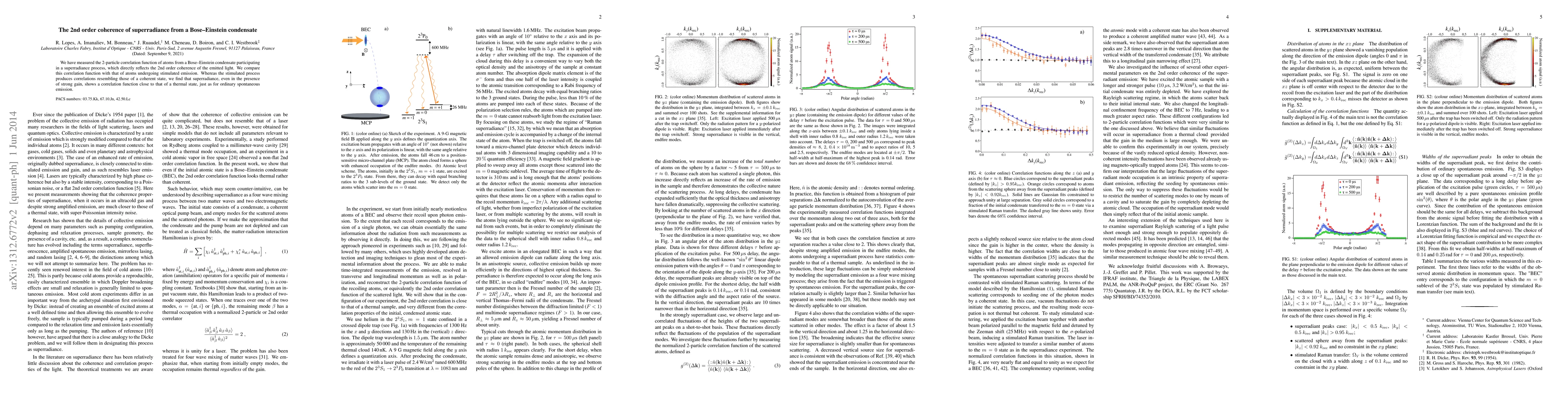 Researchers measured 2-particle correlation in superradiance from a Bose-Einstein condensate, finding it similar to that of a thermal state, unlike stimulated emission which shows coherence like a coherent state.