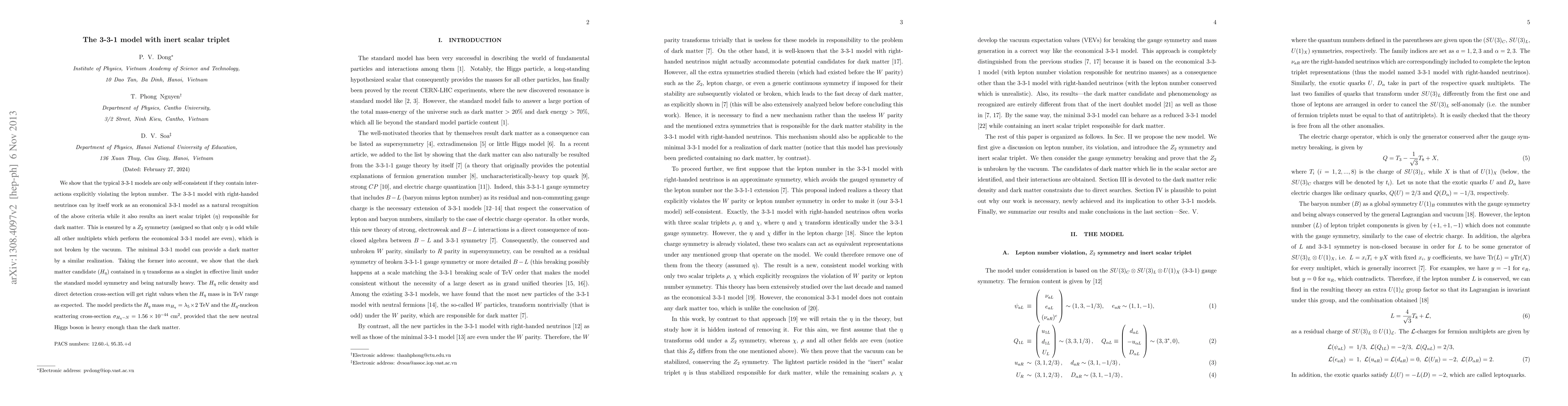 The 3-3-1 model with right-handed neutrinos introduces an inert scalar triplet (\eta) for dark matter, ensuring self-consistency by violating lepton number. The \eta candidate, stable under a Z_2 symmetry, naturally achieves the correct relic density and direct detection cross-section when its mass is in the TeV range.
