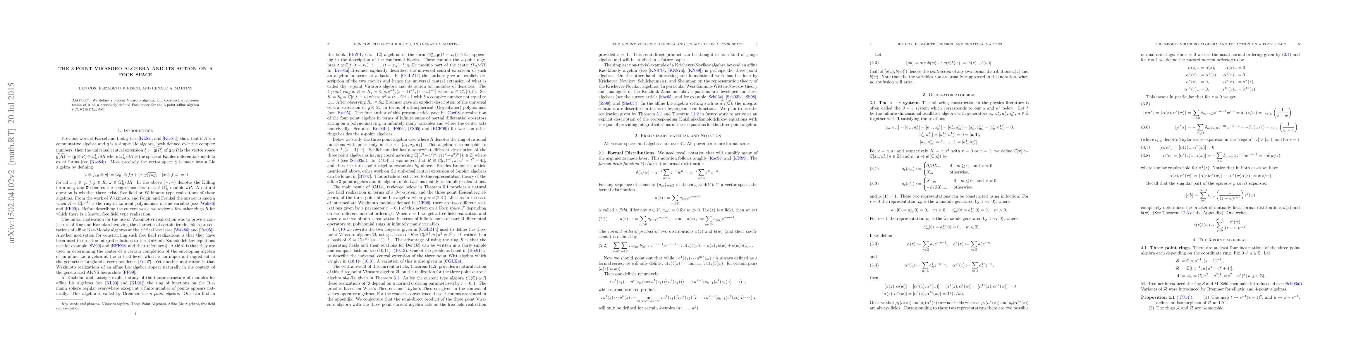 Summary: This paper introduces a 3-point Virasoro algebra and constructs its representation on a Fock space associated with the 3-point affine algebra $\mathfrak{sl}(2, \mathcal R) \oplus\left( \Omega_{\mathcal R}/d{\mathcal R}\right)$. The focus is on understanding the algebraic structure and its implications for the given Fock space.
