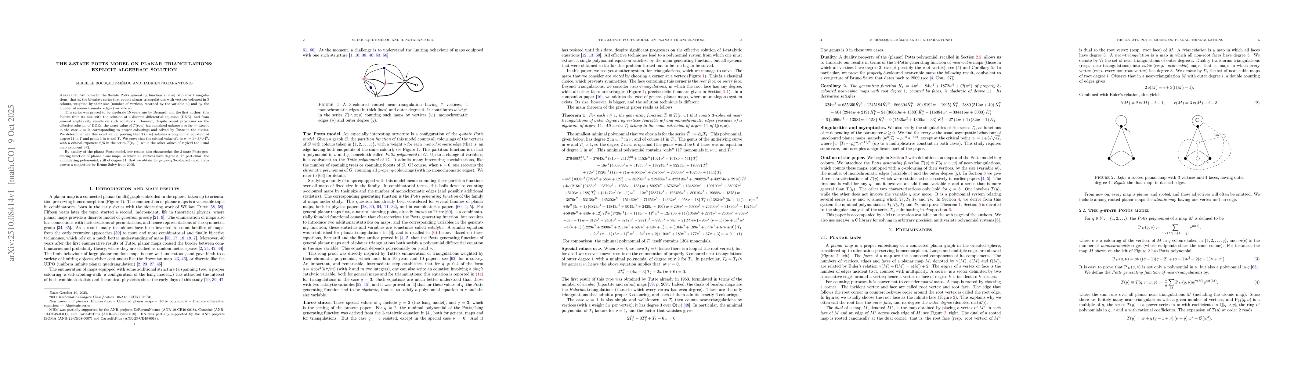 The research employs algebraic combinatorics and singularity analysis to study the 3-state Potts model on planar triangulations and cubic maps. It uses polynomial systems, differential approximants, and exact computations to determine generating functions and their singularities.