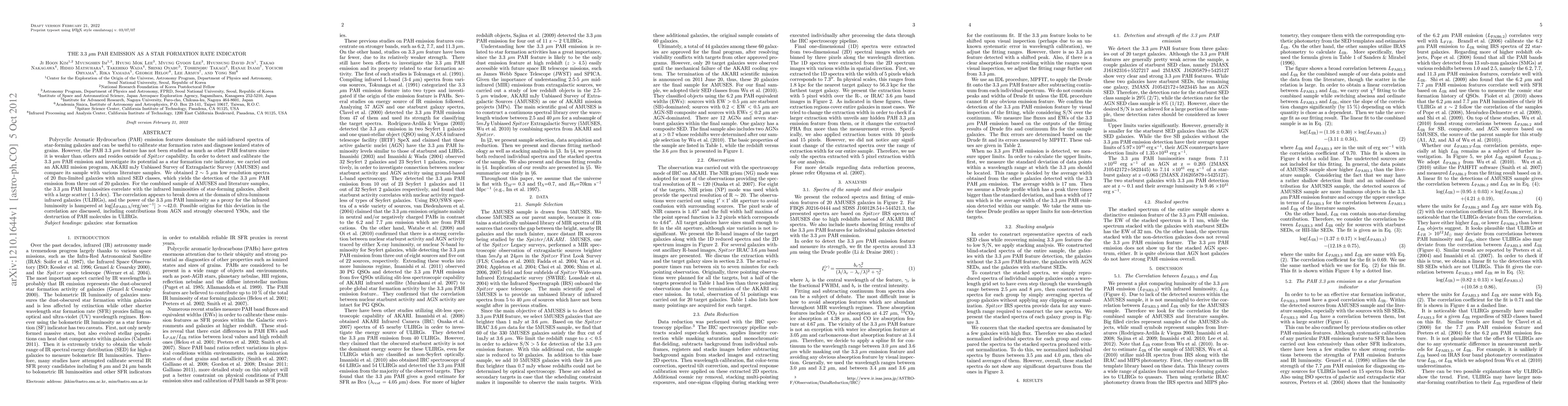 This study investigates the 3.3 micron PAH emission as a potential star formation rate indicator using data from the AKARI mission. The research finds a correlation between 3.3 micron PAH luminosities and infrared luminosities in star-forming galaxies, though the relationship breaks down for ultra-luminous infrared galaxies, likely due to AGN contributions and PAH destruction.