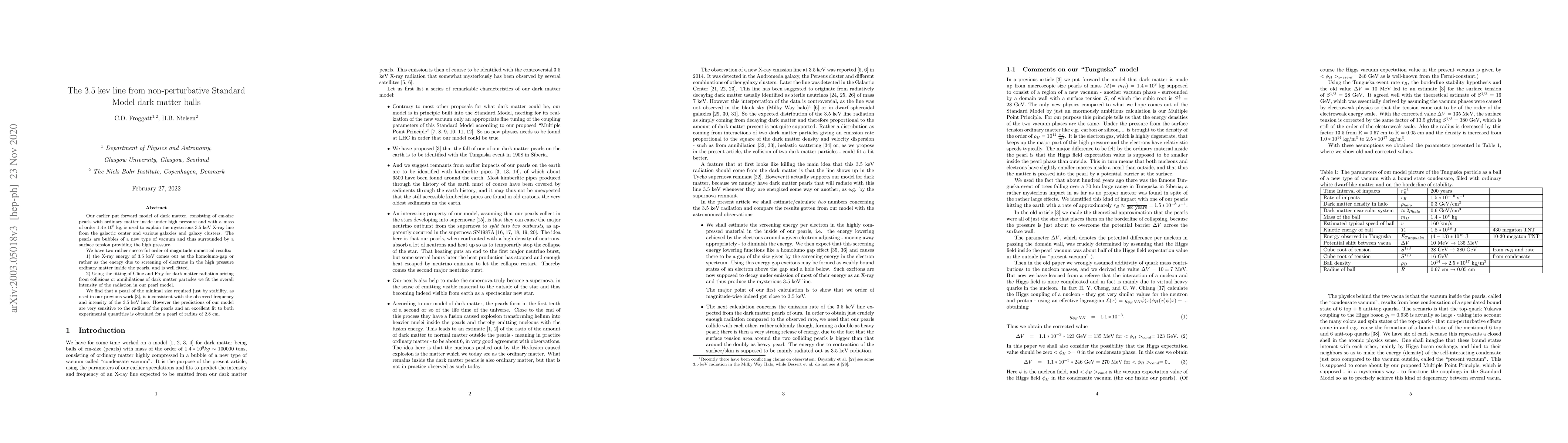Researchers propose a new explanation for the 3.5 keV X-ray line from the galaxy center, suggesting that it comes from dark matter balls under high pressure, which match observed frequency and intensity when a pearl of radius 2.8 cm is used.