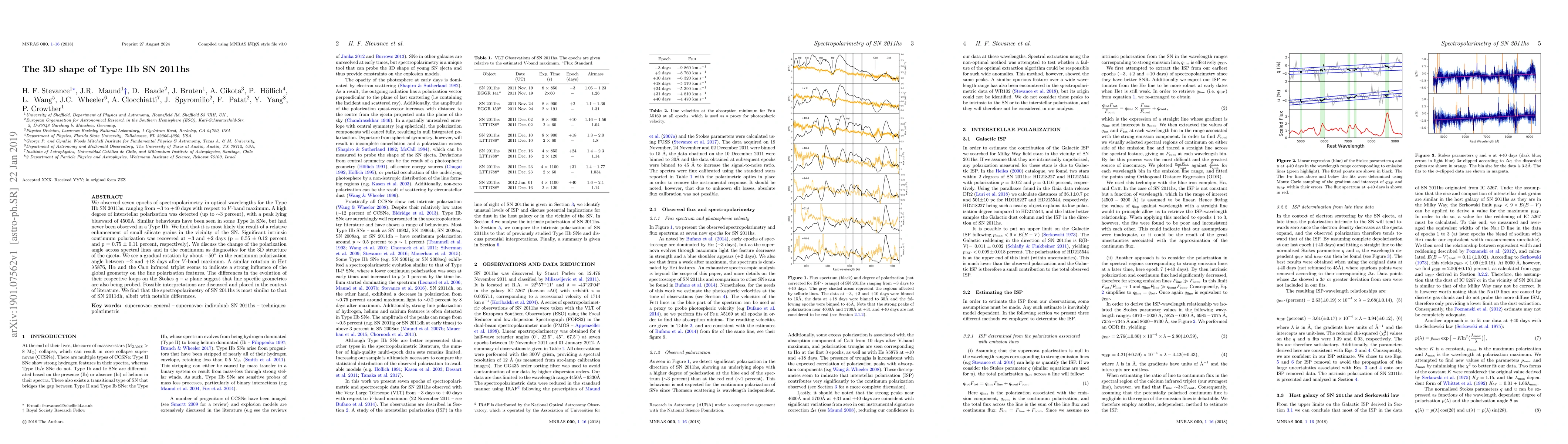 The study employed seven epochs of spectropolarimetry in optical wavelengths for Type IIb SN 2011hs, ranging from -3 to +40 days relative to V-band maximum, to analyze its 3D shape.