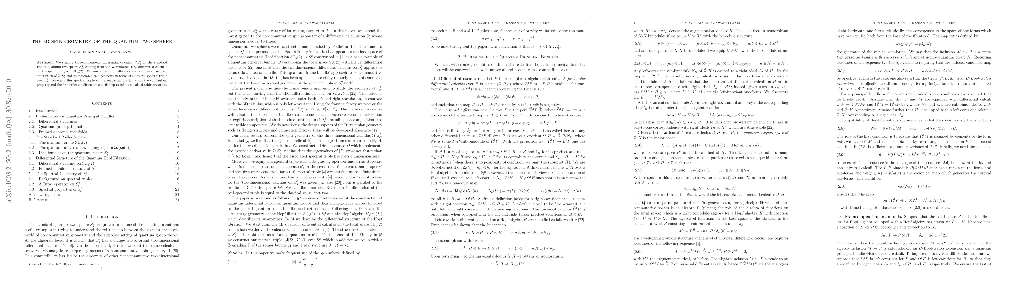 This paper studies the 3D spin geometry of a quantum two-sphere using a frame bundle approach, providing an explicit description of forms on S^2_q and its associated spectral triple with real structure.