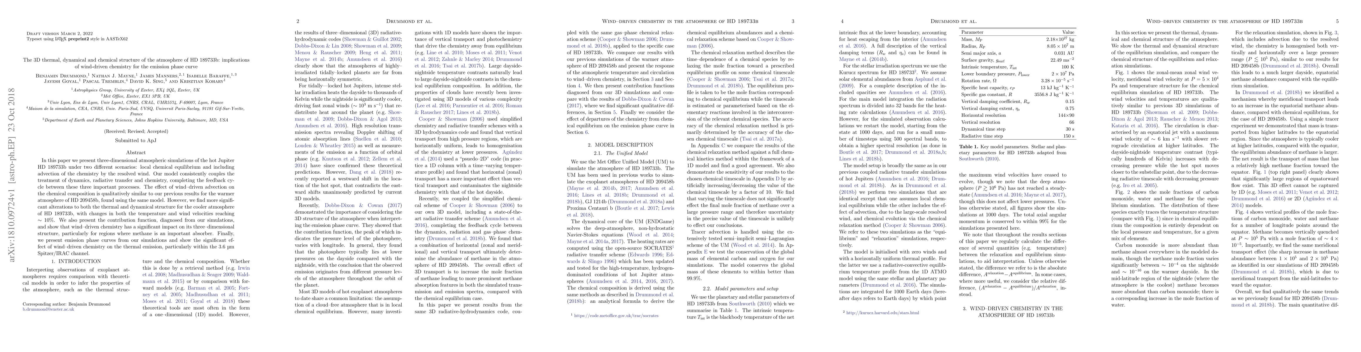 This paper investigates the 3D thermal, dynamical, and chemical structure of HD 189733b's atmosphere under two scenarios: local chemical equilibrium and wind-driven chemistry. The results show significant alterations in thermal and dynamical structures, especially in the cooler atmosphere, and highlight the impact of wind-driven chemistry on the emission phase curve, particularly in the 3.6 μm Spitzer/IRAC channel.