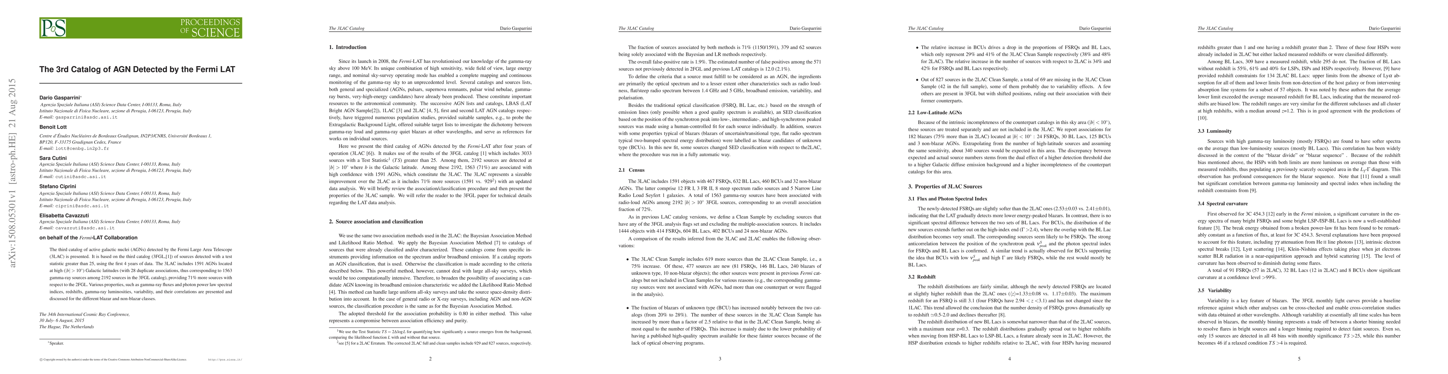 The third catalog of active galactic nuclei (AGNs) detected by the Fermi Large Area Telescope (3LAC) is presented. It is based on the third catalog (3FGL,\cite{3FGL}) of sources detected with a test statistic greater than 25, using the first 4 years of data. The 3LAC includes 1591 AGNs located at high ($|b|>10^\circ$) Galactic latitudes (with 28 duplicate associations, thus corresponding to 1563 gamma-ray sources among 2192 sources in the 3FGL catalog), providing $71\%$ more sources with respect to the 2FGL. Various properties, such as gamma-ray fluxes and photon power law spectral indices, redshifts, gamma-ray luminosities, variability, and their correlations are presented and discussed for the different blazar and non-blazar classes.