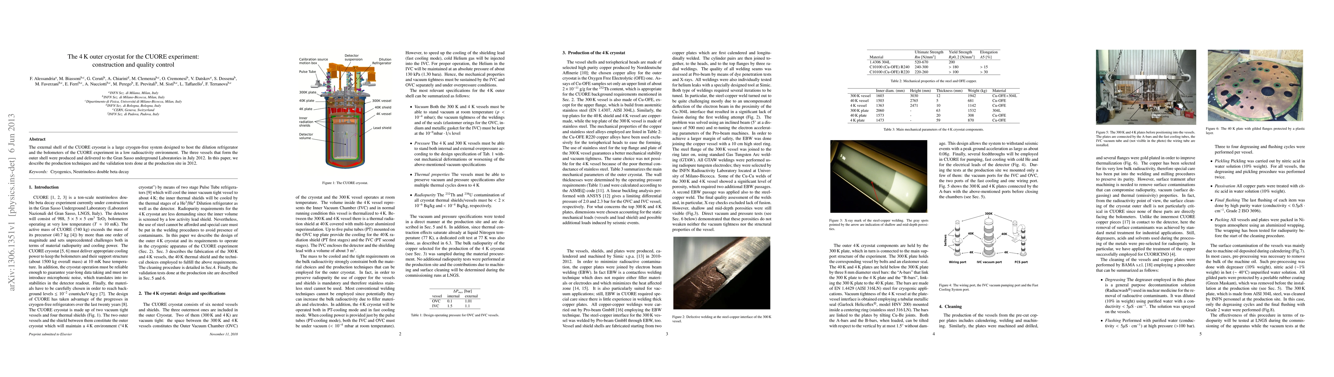 The CUORE cryostat's outer shell, a large cryogen-free system, was constructed to house the dilution refrigerator and bolometers in a low radioactivity environment. The paper details the production techniques and quality control validation tests conducted in 2012.