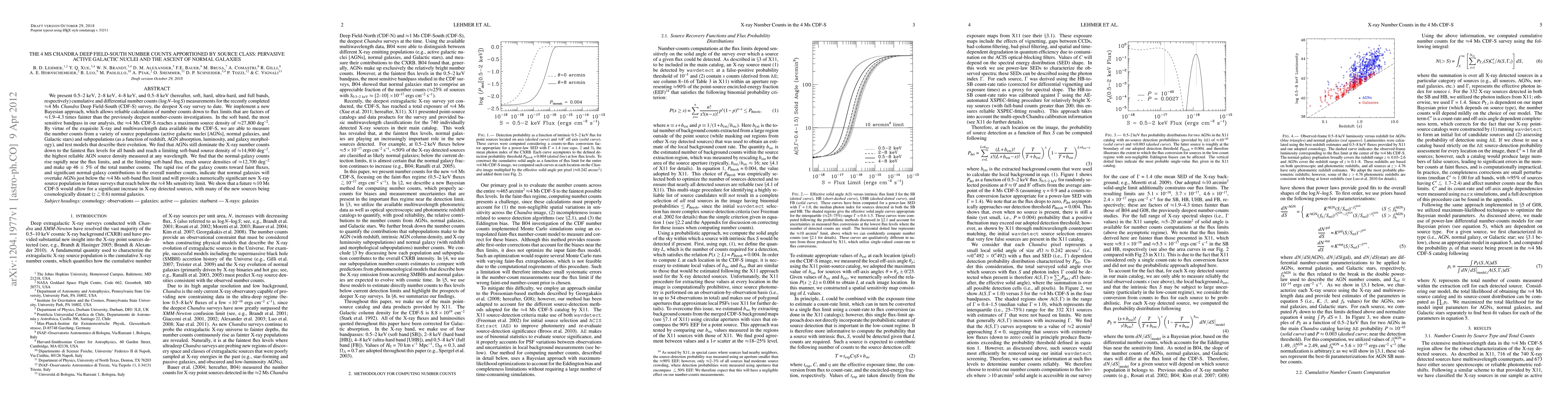 We present 0.5-2 keV, 2-8 keV, 4-8 keV, and 0.5-8 keV cumulative and differential number counts (logN-logS) measurements for the recently completed ~4 Ms Chandra Deep Field-South (CDF-S) survey, the deepest X-ray survey to date. We implement a new Bayesian approach, which allows reliable calculation of number counts down to flux limits that are factors of ~1.9-4.3 times fainter than the previously deepest number-counts investigations. In the soft band, the most sensitive bandpass in our analysis, the ~4 Ms CDF-S reaches a maximum source density of ~27,800 deg-2. By virtue of the exquisite X-ray and multiwavelength data available in the CDF-S, we are able to measure the number counts from a variety of source populations (active galactic nuclei [AGNs], normal galaxies, and Galactic stars) and subpopulations (as a function of redshift, AGN absorption, luminosity, and galaxy morphology), and test models that describe their evolution. We find that AGNs still dominate the X-ray number counts down to the faintest flux levels for all bands and reach a limiting soft-band source density of ~14,900 deg-2, the highest reliable AGN source density measured at any wavelength. We find that the normal-galaxy counts rise rapidly near the flux limits, and at the limiting soft-band flux, reach source densities of ~12,700 deg-2 and make up 46+/-5% of the total number counts. The rapid rise of the galaxy counts toward faint fluxes, and significant normal-galaxy contributions to the overall number counts, indicate that normal galaxies will overtake AGNs just below the ~4 Ms soft-band flux limit and will provide a numerically significant new X-ray source population in future surveys that reach below the ~4 Ms sensitivity limit. We show that a future ~10 Ms CDF-S would allow for a significant increase in X-ray detected sources, with many of the new sources being cosmologically distant (z > 0.6) normal galaxies.
