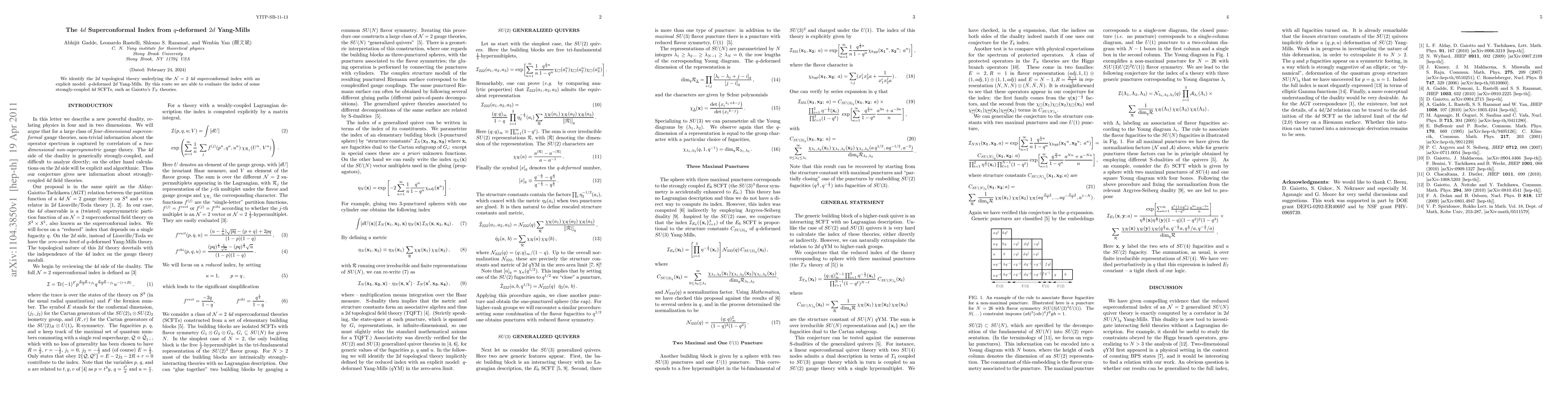 This paper identifies the 2d topological theory underlying the N=2 4d superconformal index with q-deformed 2d Yang-Mills, enabling evaluation of the index for strongly-coupled 4d SCFTs like Gaiotto's T_N theories.
